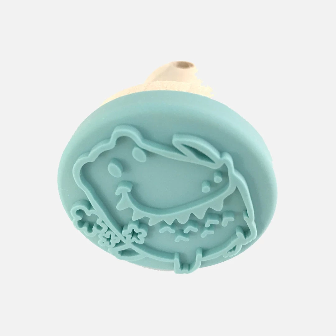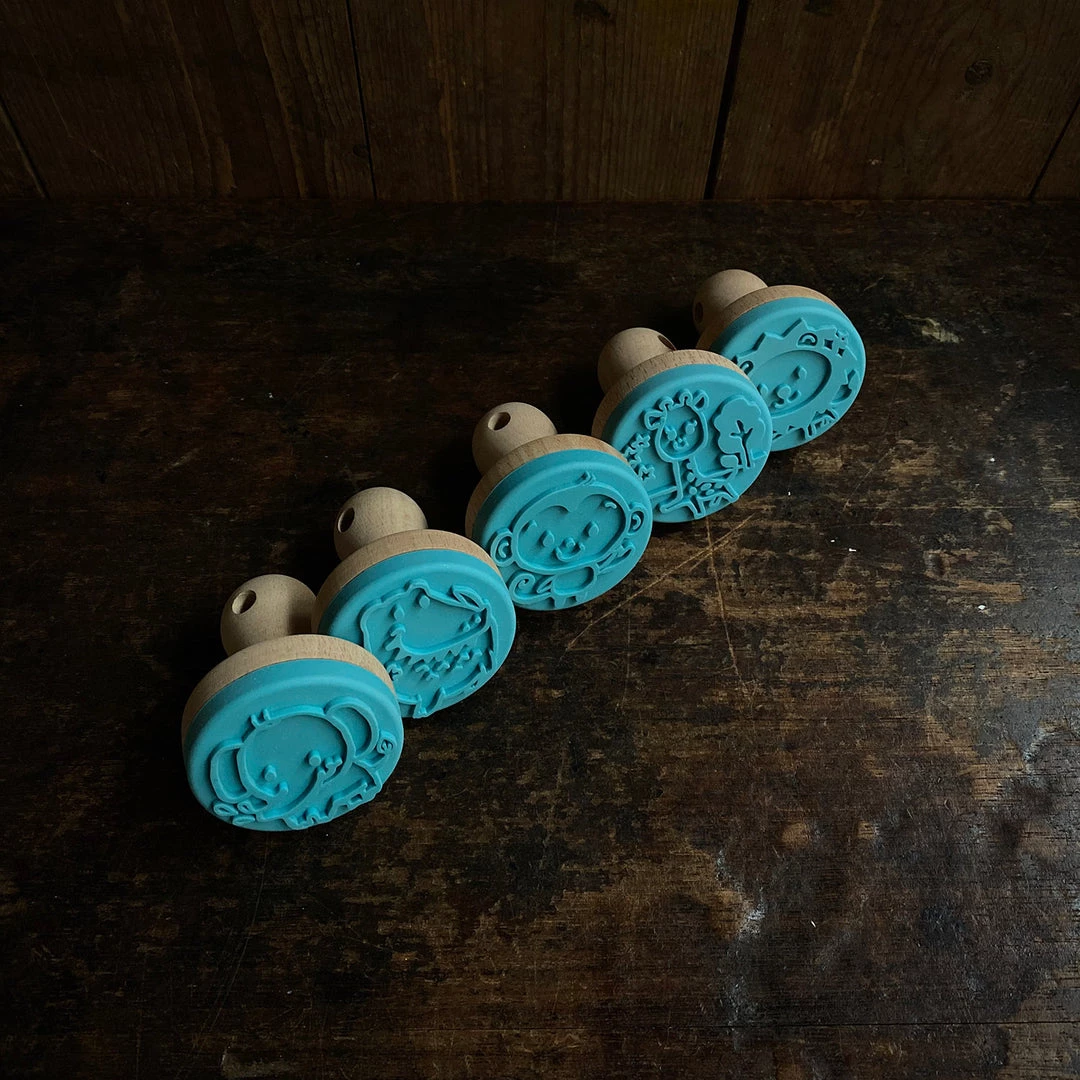 Animal designs made from silicone (removable and dishwasher safe)Â with wooden handle. Both materials approved for kitchen use.