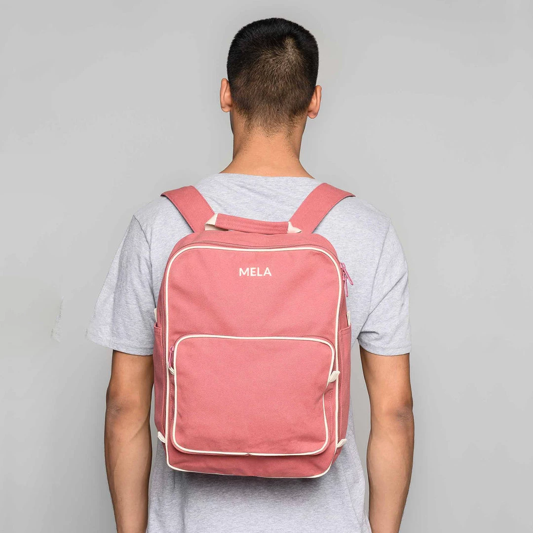 The backpack MELA II is certified by both the Fairtrade Standard and the Global Organic Textile Standard (GOTS). It is exclusively made from sustainable materials such as organic cotton canvas and free from any parts of animal origin, hence vegan. Also, the buckles are free from chrome and nickel. The dyed organic cotton canvas is naturally water resistant. Due to different impacts your MELA II will get an individual note over time.