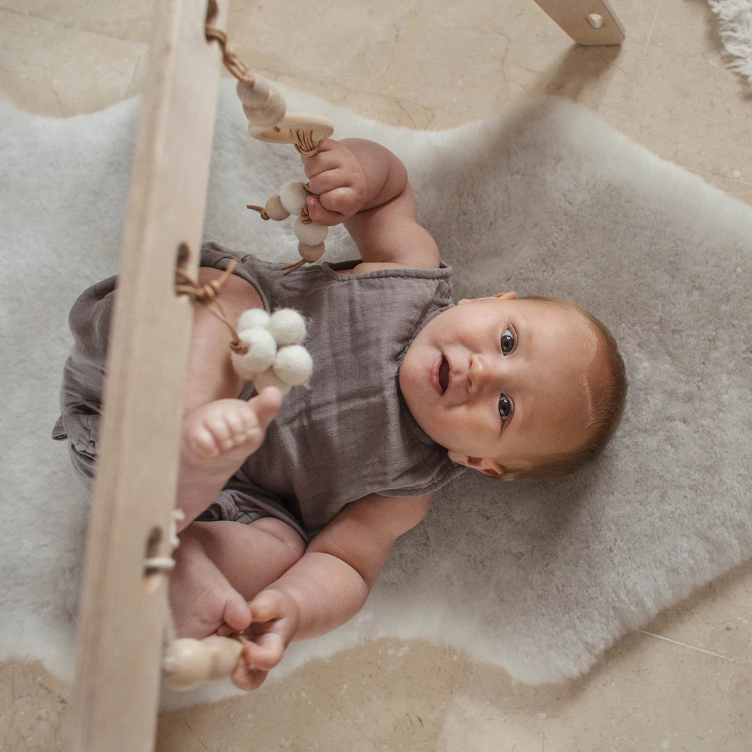 The Wrigglemat is great used as a soft and cosy playmat, suitable for newborns and babies. Natural and snuggle-proof play space and the perfect soft spot if you need to put your baby down. Hypoallergenic and naturally antibacterial and temperature regulating. The Sheepskin Wrigglemats have a shorter pile making them baby-safe and suitable from birth.
