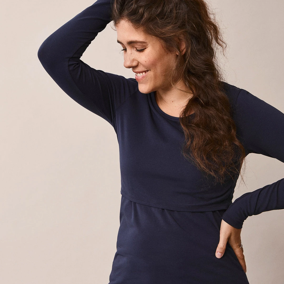 This is one of Boob’s most well known and much loved items. The classic long sleeve top is a ‘wear everyday’ style. A perfect base layer with great functionality for use throughout pregnancy and nursing. The figure-hugging, flexible fit has smart nursing access and thanks to the soft and stretchy cotton jersey, this is an easy to use item that you will wear again and again. Machine washable at 40 degrees.