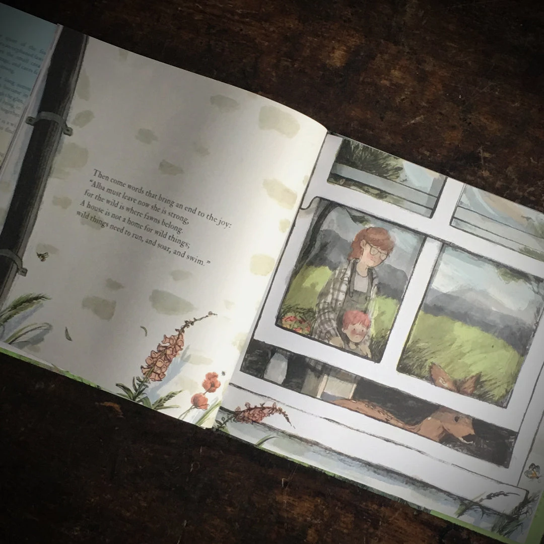 In the quiet dawn of the forest a boy finds an orphan fawn, hungry and alone. He carefully carries her home, caring for her while she grows strong. The boy and the fawn become best friends. Together they spend a long summer outdoors together running through the glen, leaping over the heather, and lying in the dappled sunlight.