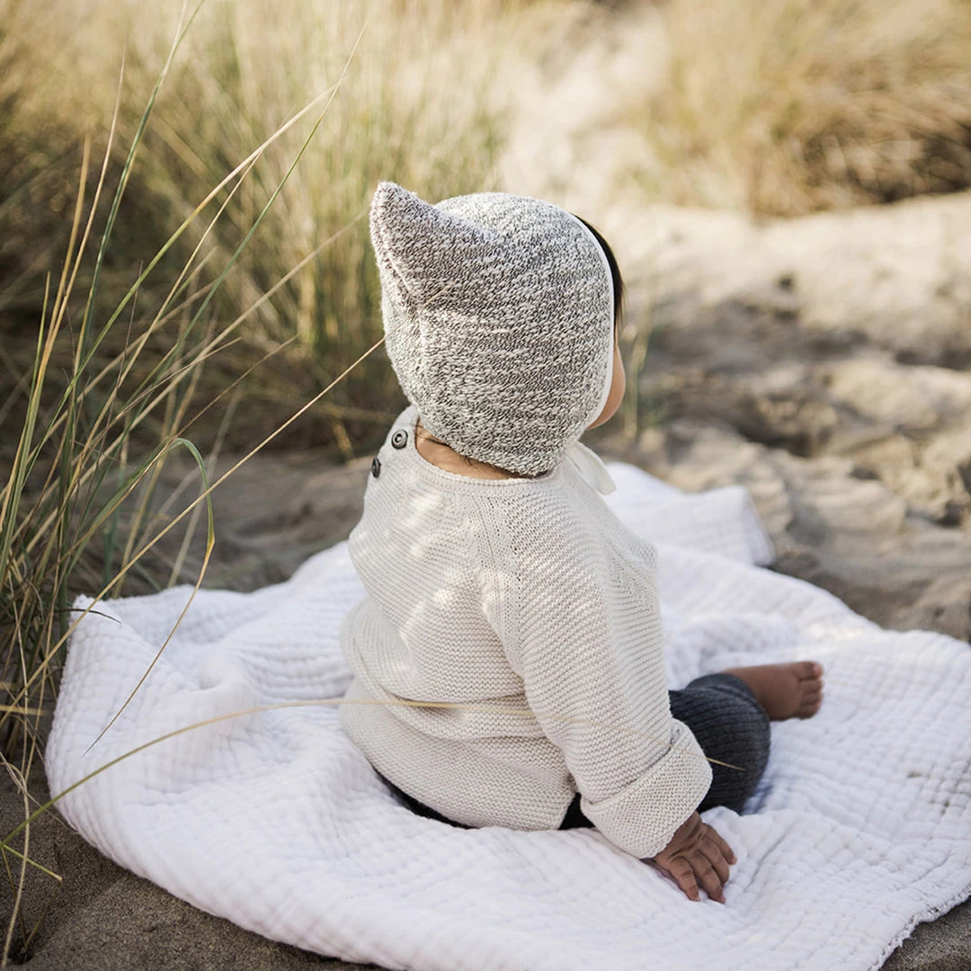 This medium weight bonnet has a sweet pixie style cut, made in Cotton Terry knit.