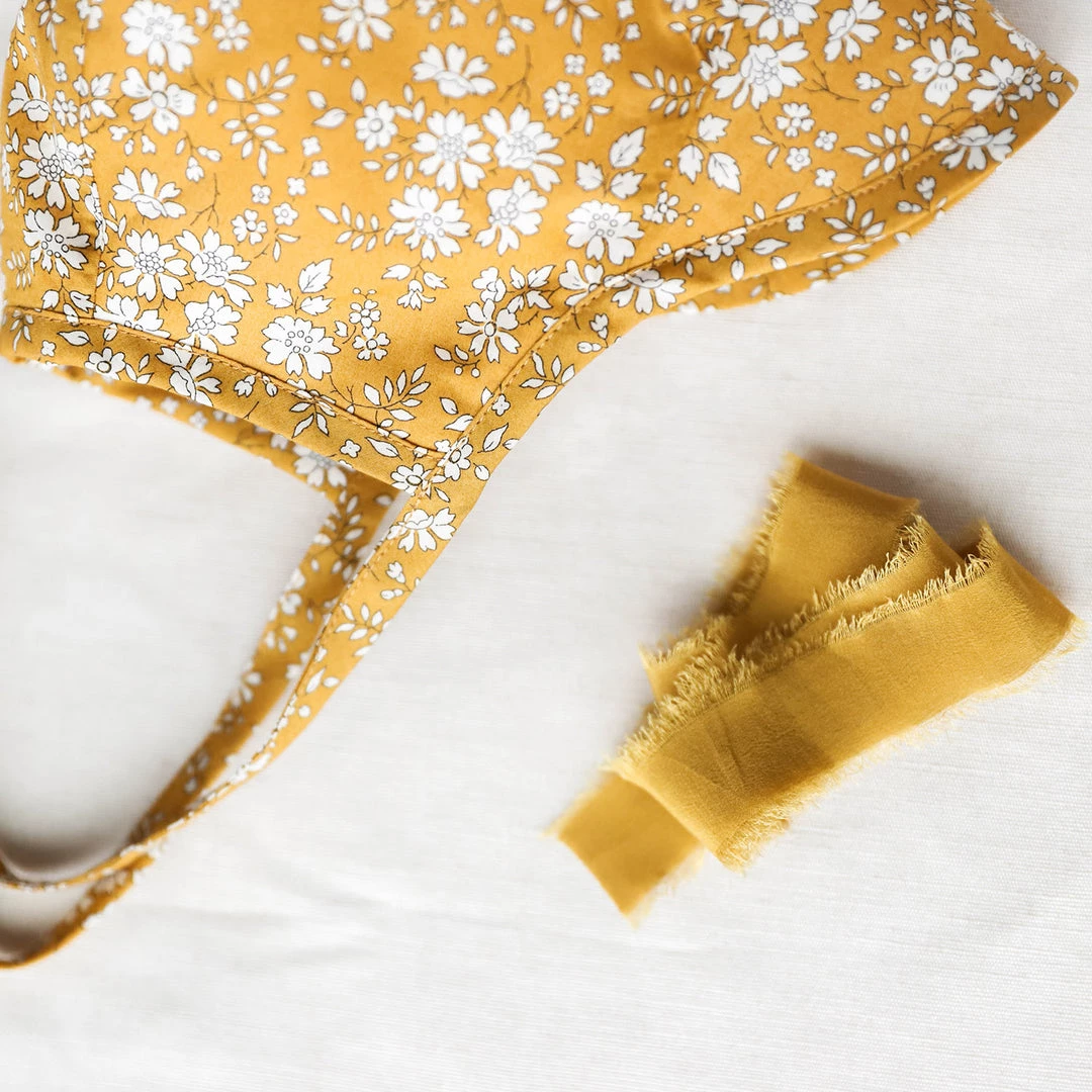 Handmade from Liberty of London cotton, trimmed in cotton, and lined with organic cotton. Briar only use the best for this sweet bonnet.