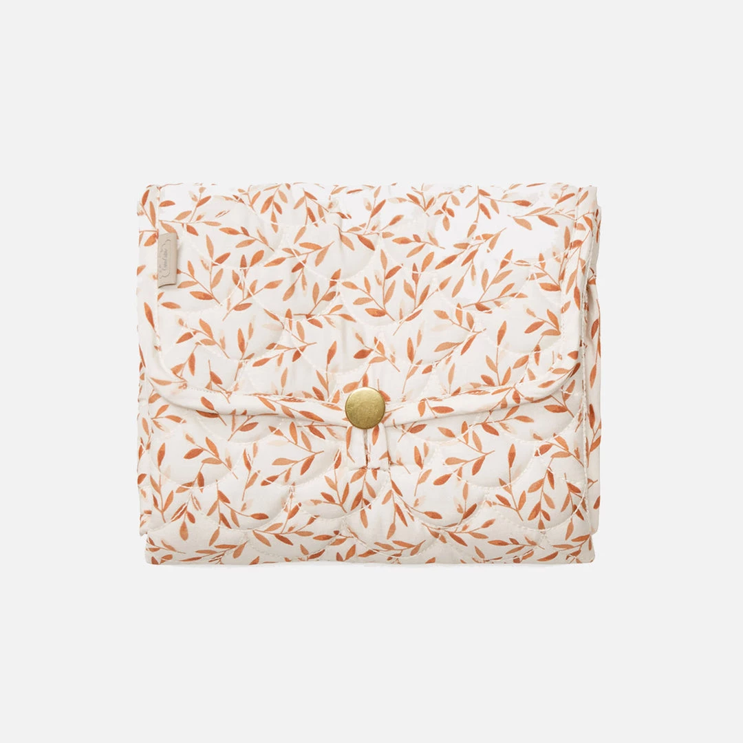 Sweet patterned, practical changing mat with beautiful wave quilt design. This mat is perfect for many different changing situations on the go. Easily folded with one hand, to a handy small size, that fits into the nursery/diaper bag. It has a practical pocket inside that fits a diaper and a muslin. The mat is coated on the outside to make it dirt and water repellent. The changing mat is padded with thin foam to give your baby a soft and comfortable base on which to lie.