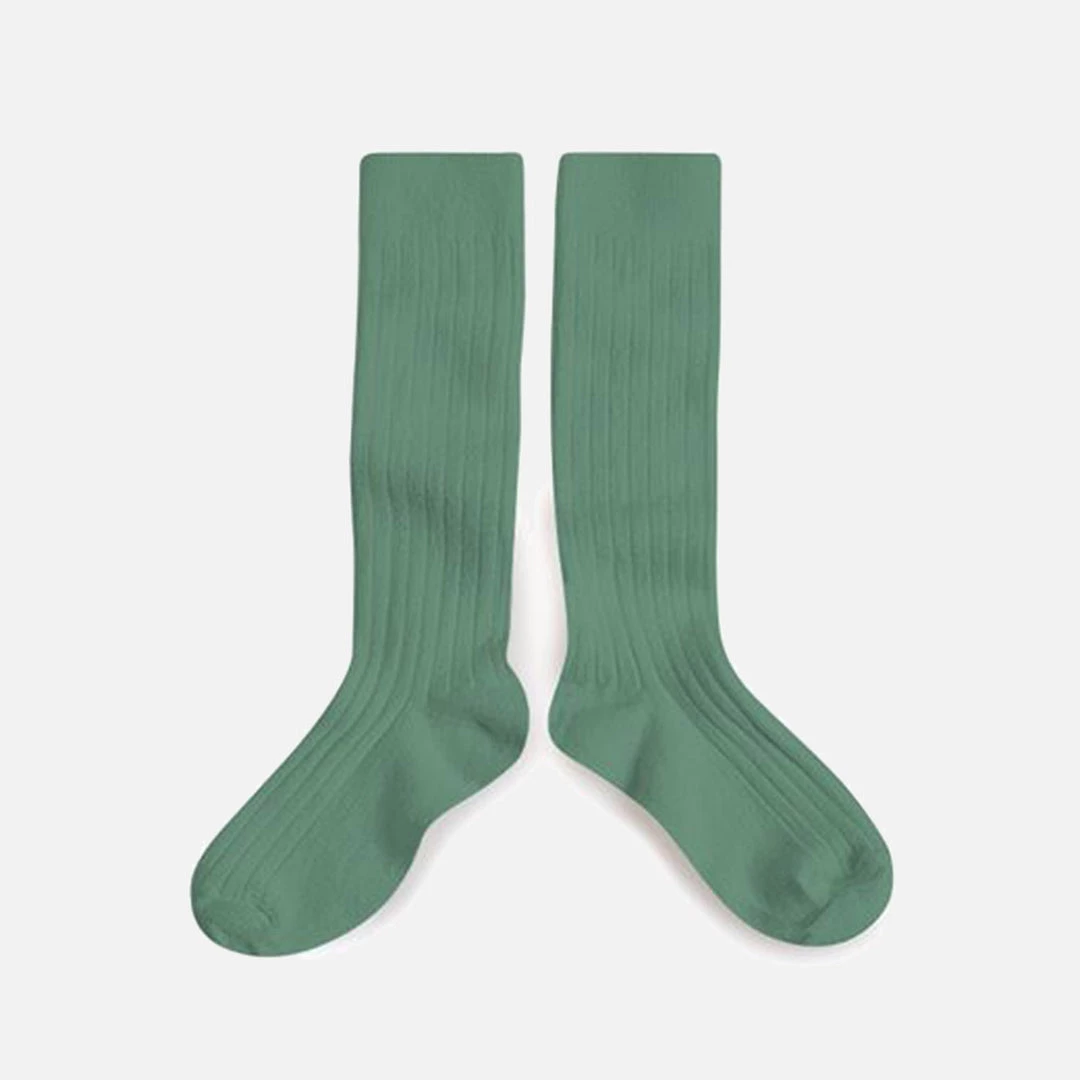 Comfortable, classic long socks in Celadon. These socks are knitted using a blend of 84% egyptian cotton, 14% polyamide and 2% lycra/elastane for excellent elasticity.Â