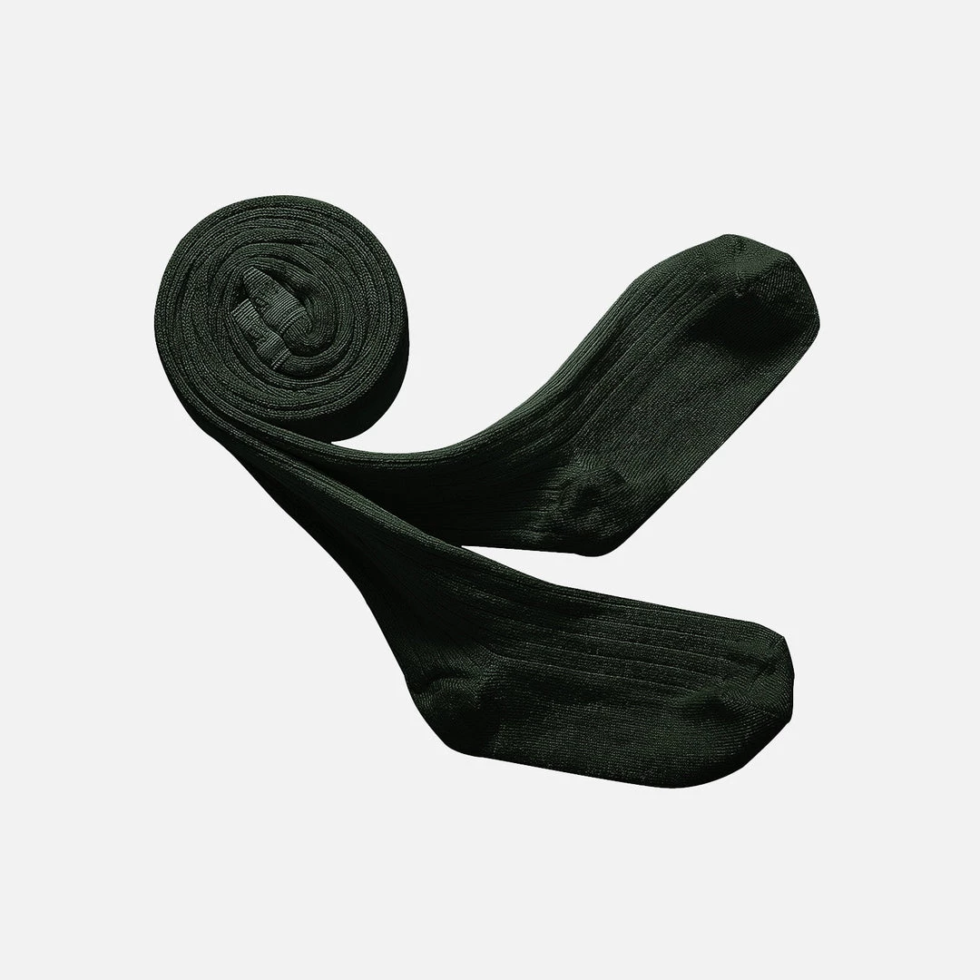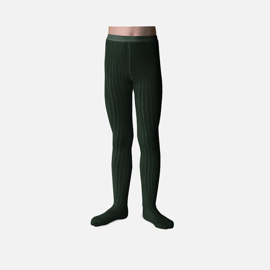 Soft, comfortable and trendy kids tights. These tights are knitted using a blend of 84% egyptian cotton, 14% polyamide and 2% lycra/elastane for excellent elasticity. This colour is Vert Forêt, we call Forest Green.