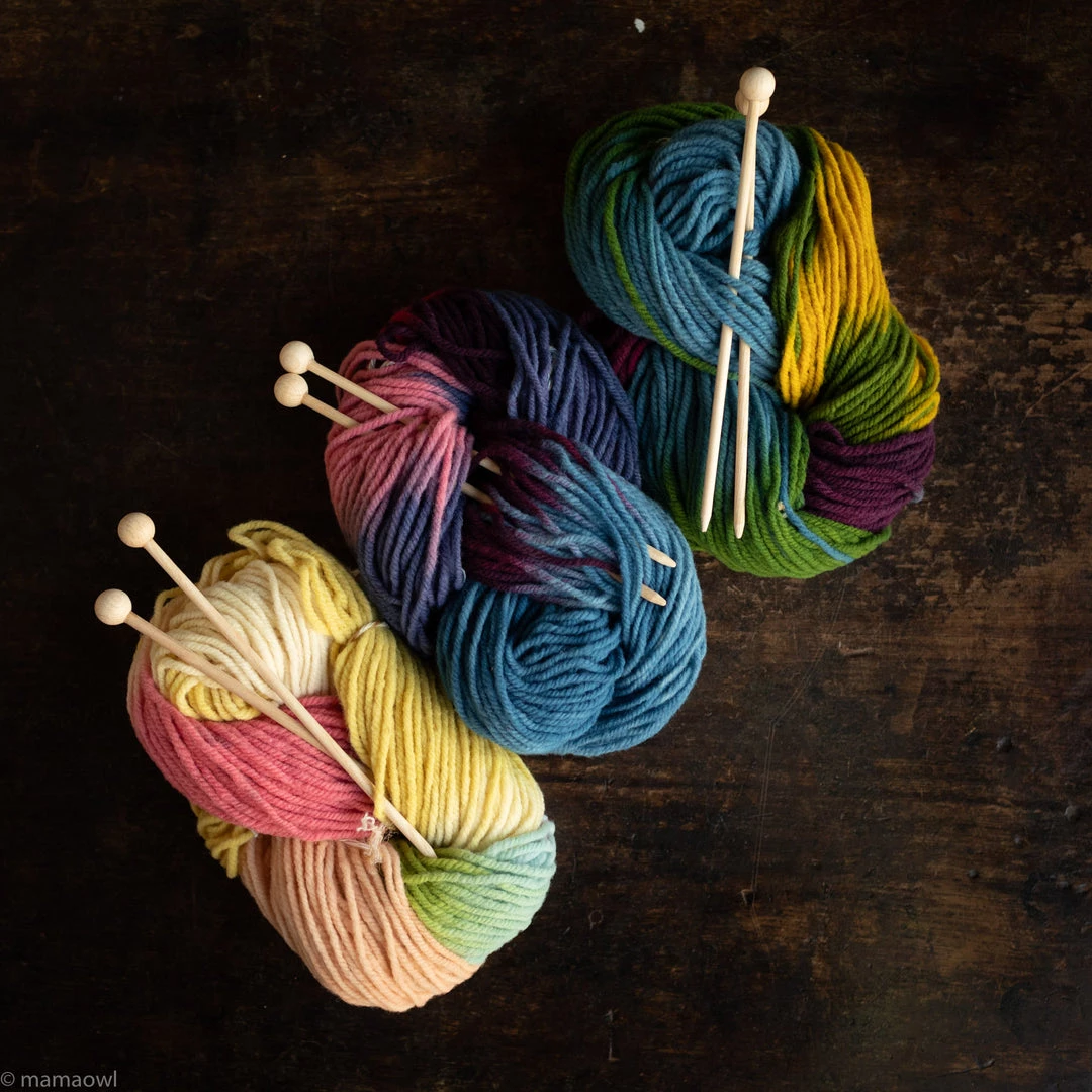 Please note: sharp points on knitting needles.