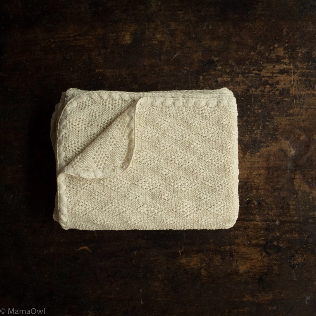Beautiful, delicate, yet warm and strong. Disana’s knitted merino wool baby blanket is a classic.