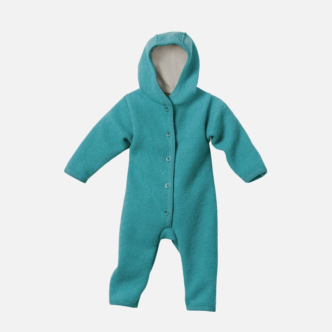Disana’s boiled wool overall / snuggle-suit is perfect for babies and toddlers, keeping them warm from top to toe. Light and flexible, yet very warm, windproof and dirt resistant, this is a great suit. Use it from fall to spring. We feel these are true to size.
