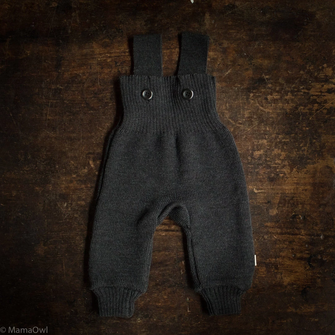 One of our most popular items. Chunky, thick knitted merino wool dungarees, perfect to keep