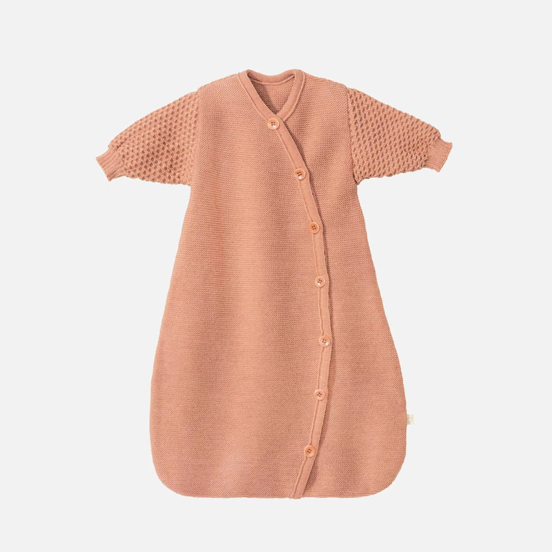 A beautiful and springy Merino knit. This Disana knitted sleeping bag is unlike other sleeping bags. It is made with the finest Organic merino wool. While the wide leg bag leaves space for baby to wriggle about, the knitted sleeves keep your little one well wrapped and warm. The sleeping bag design keeps baby cosy, even when they have trouble sleeping.