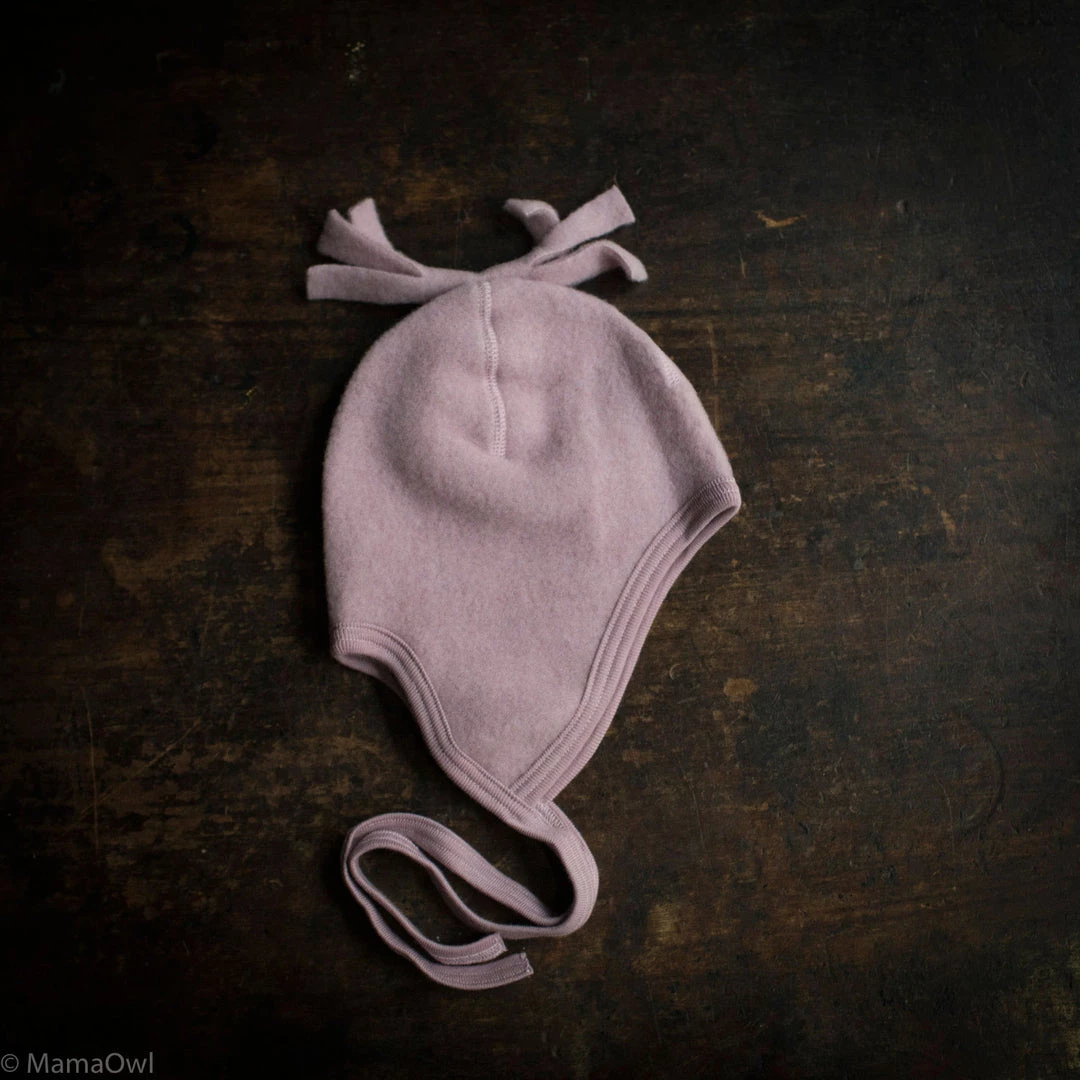 These hats are made from the softest wool fleece. They are stretchy and fit tight around the ears with a little tassel on the top. Wool fleece is comfy, warm and incredible soft. The perfect addition to your little ones winter wardrobe.