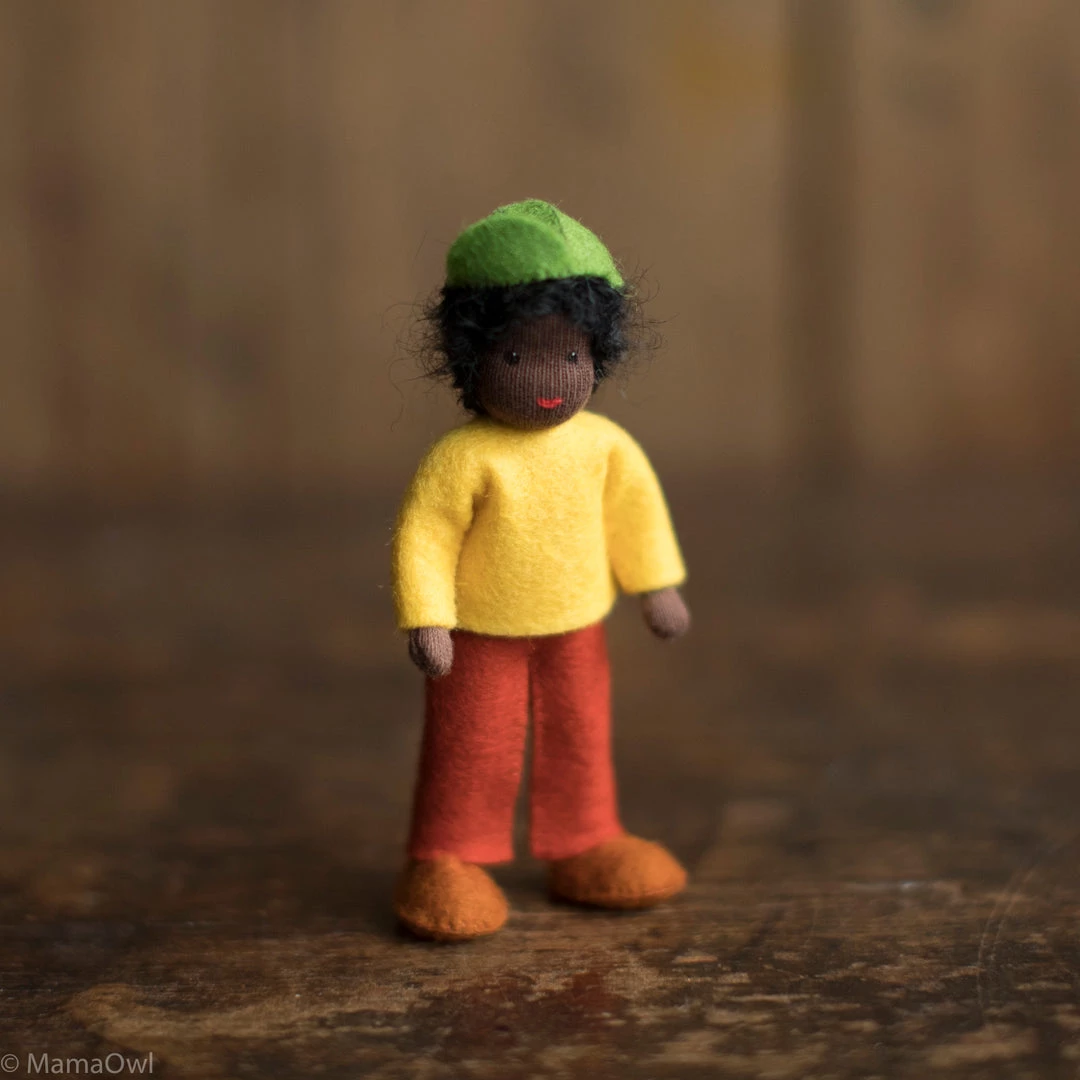 Flexible Dolls house dolls, perfect for playing with alongside all types of toys. Each doll is unique and is made using scraps of material from production waste. As each doll is different, the item you receive may not be reflected in the images here. Dolls are picked at random and we do not have images of all the different clothing colour options as these change with every delivery.