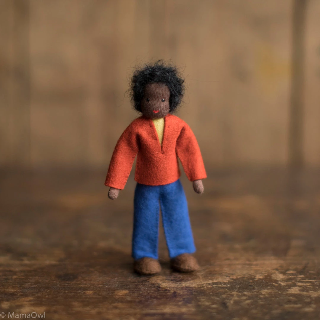 Flexible Dolls house dolls, perfect for playing with alongside all types of toys. Each doll is unique and is made using scraps of material from production waste. As each doll is different, the item you receive may not be reflected in the images here. Dolls are picked at random and we do not have images of all the different clothing colour options as these change with every delivery.