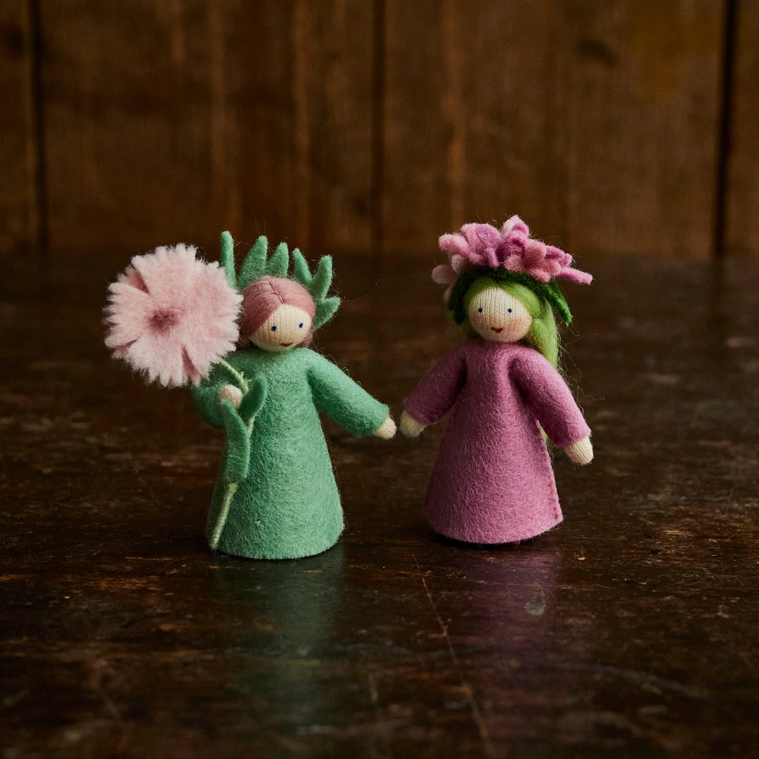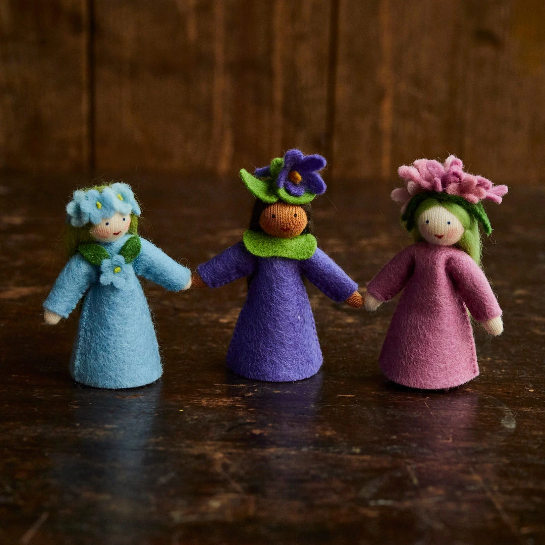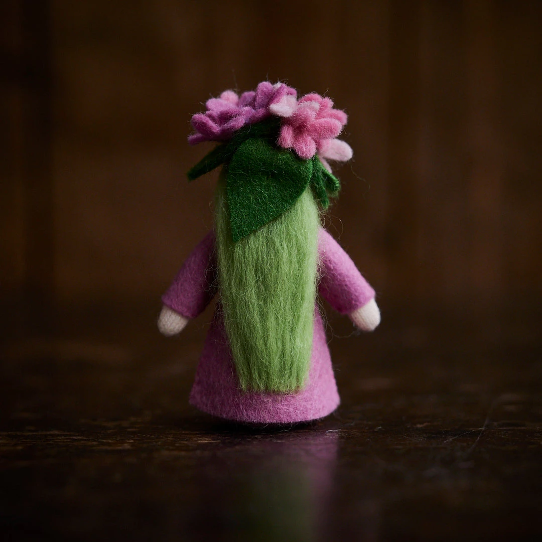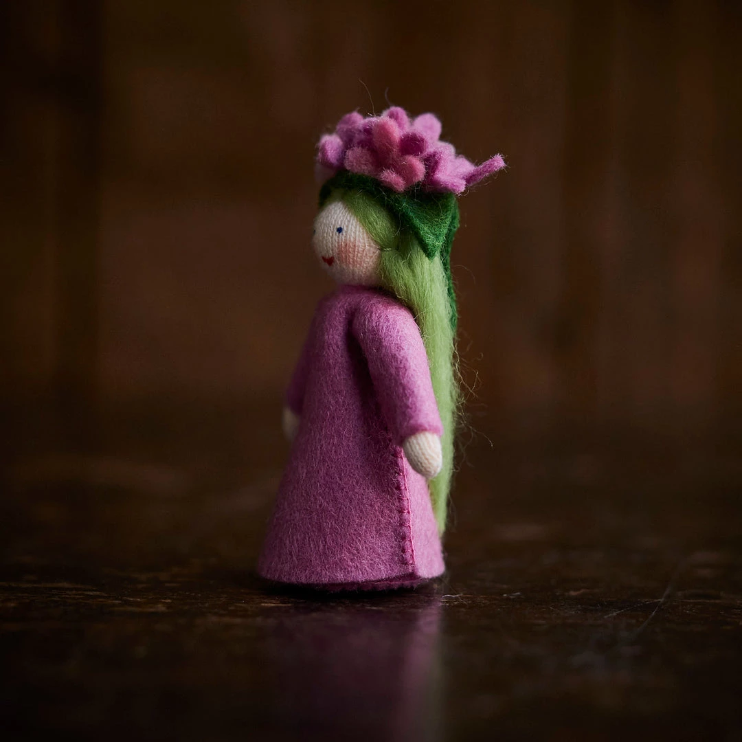 Little handmade flower fairies, made of wool felt and crafted in Romania. Spring flower Lilac.