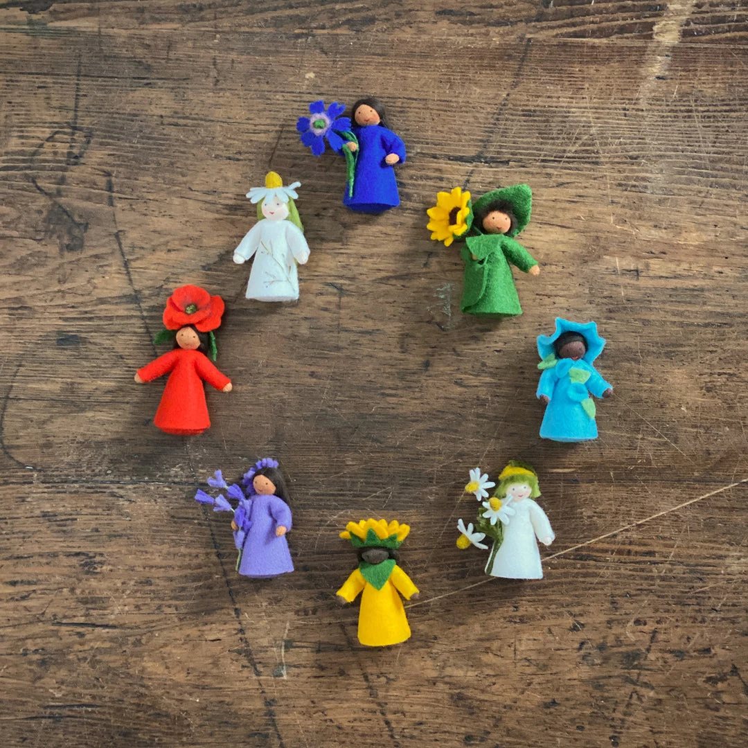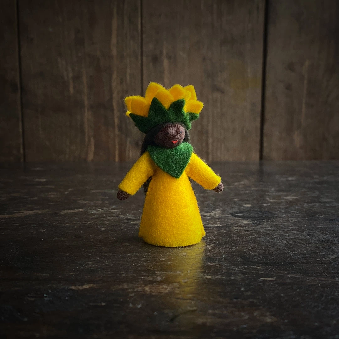 Little handmade flower fairies, made of wool felt and crafted in Romania. Summer flower Sunflower.