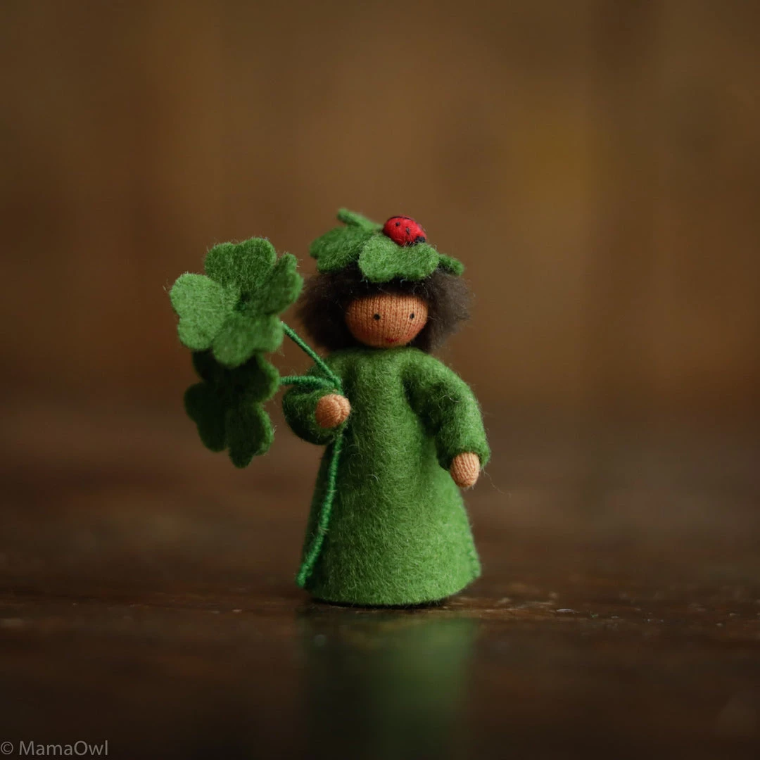 - Some of these fairies have the ladybird sitting on top of the clover leaf, while others sit just under the Lear, on the head. This is not a fault, just a variation of this hand made product.Â