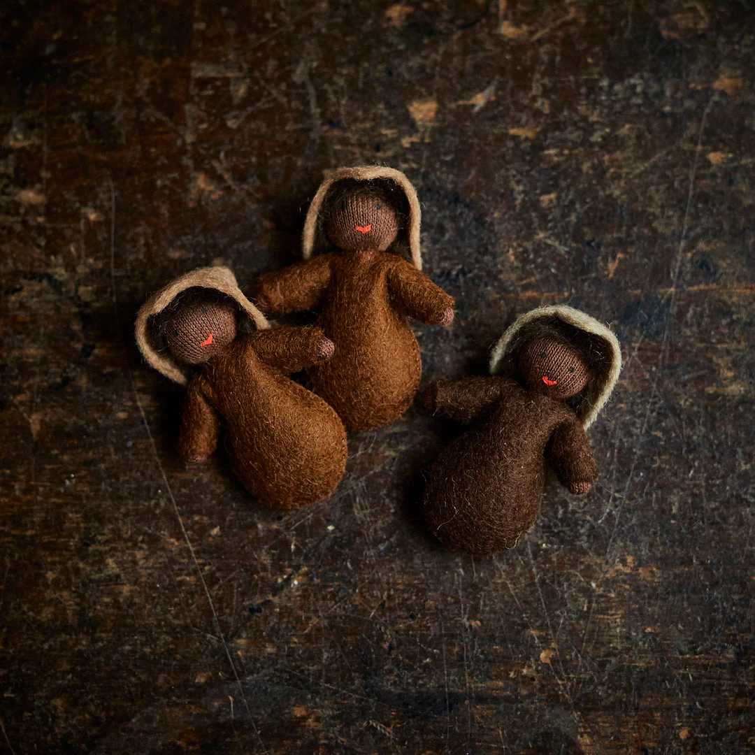 These seed babies can fit in Mother Earth’s arms and are also perfect for open ended play. Handmade out of wool felt, crafted in Romania.