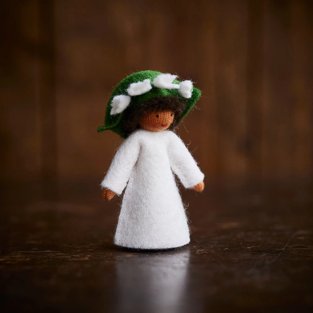Little handmade flower fairies, made of wool felt and crafted in Romania. Spring flower Lilly of The Valley.