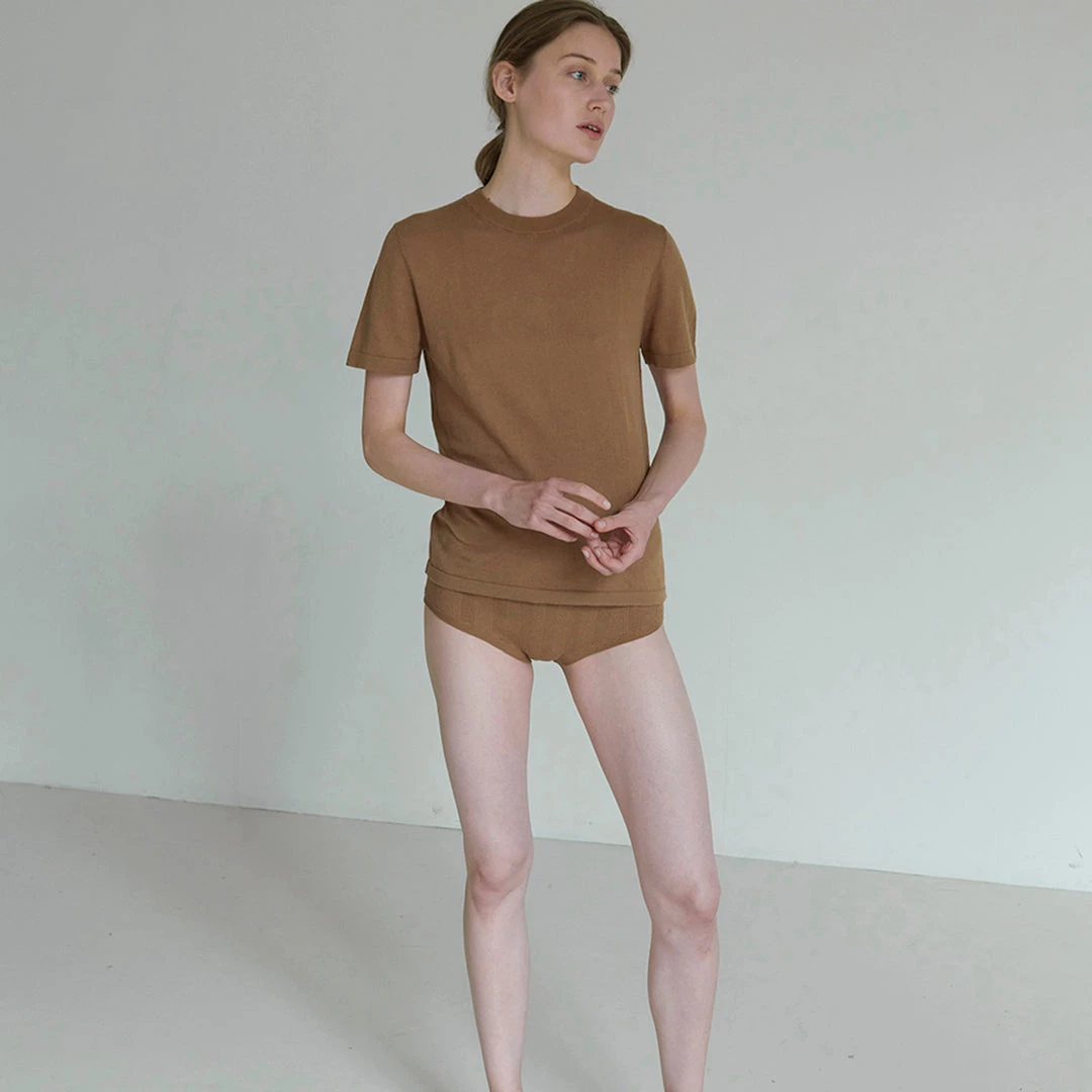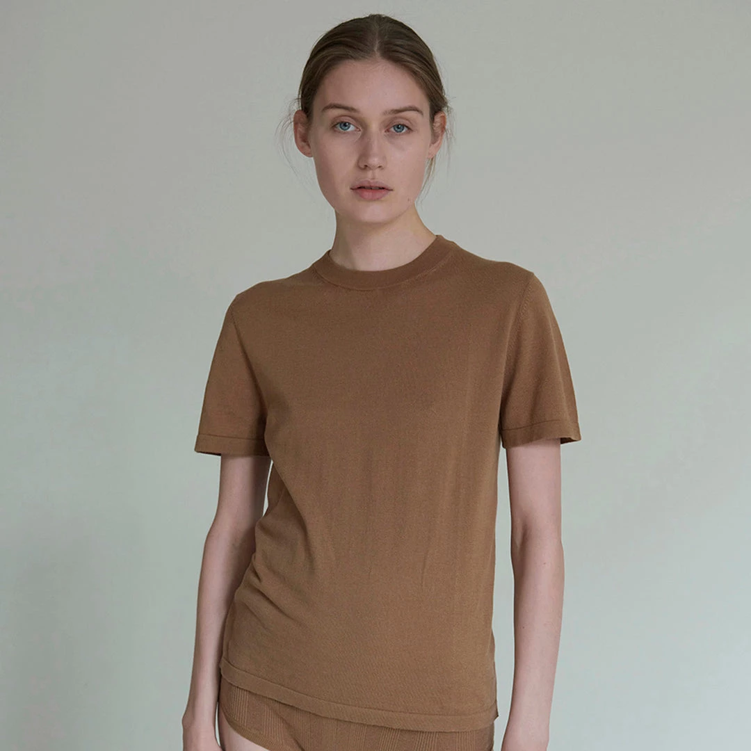 Classic tee with a straight loose fit. Knitted in a lightweight single jersey. Detailed with clean folded hems and a ribbed neck trim.