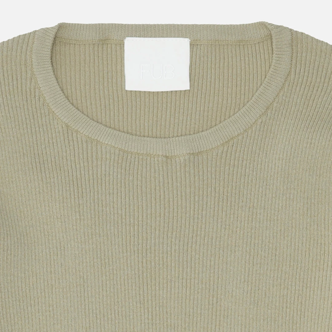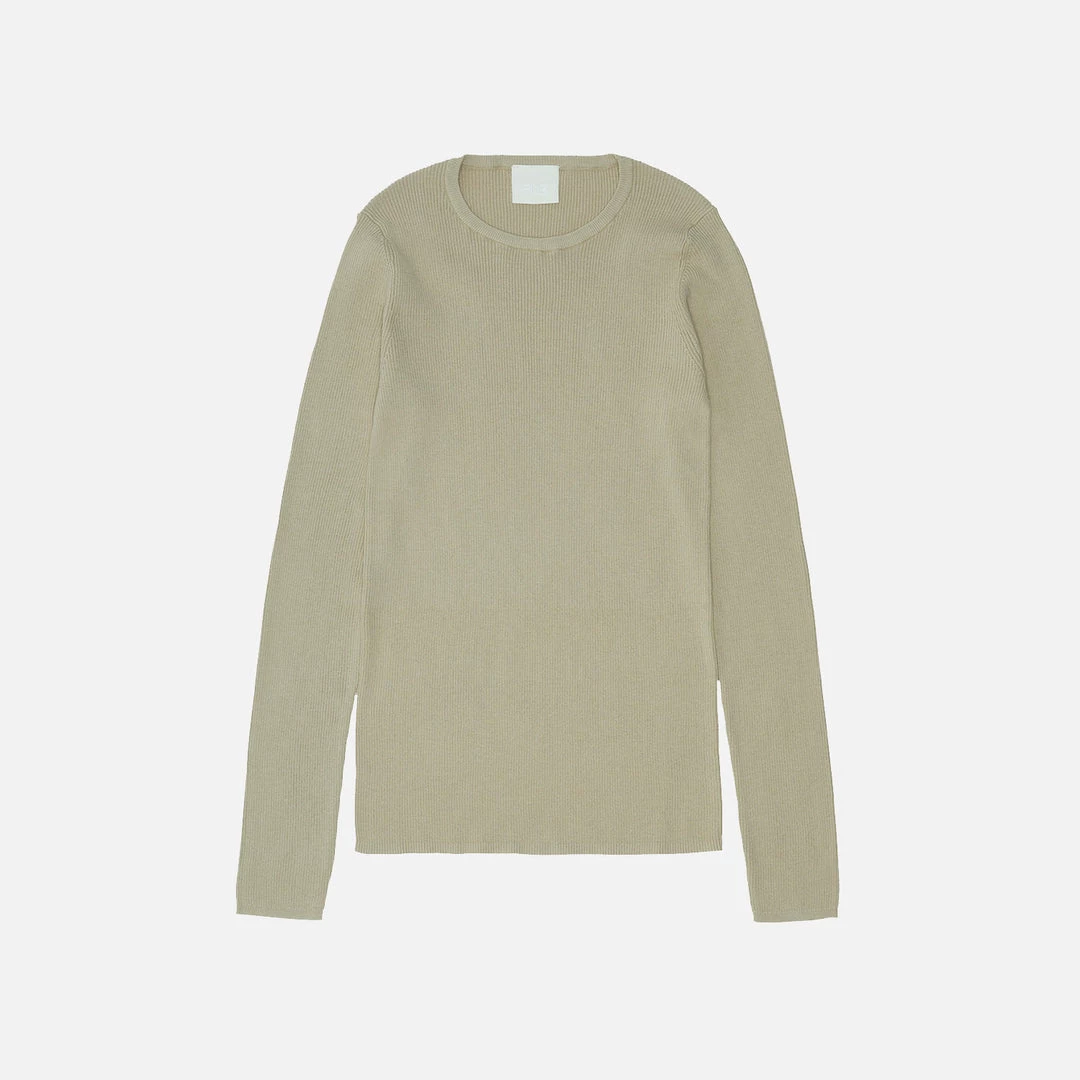 Long sleeve top with a straight slim fit. Knitted in extra fine rib. Features a round neckline, rib trims and clean selvedge at bottom hemline. Perfect weight for summer.