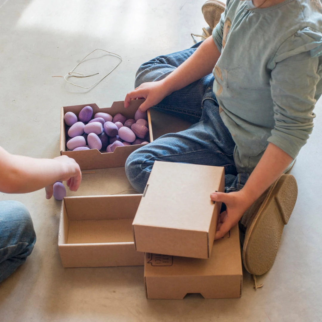 These egg shaped wooden mandala counters are great for developing mathematical thinking, especially counting and simple sums. Children also love to explore patterns and make circular mandala-style pictures with the shapes. They can also be used in small worlds and imaginative play.