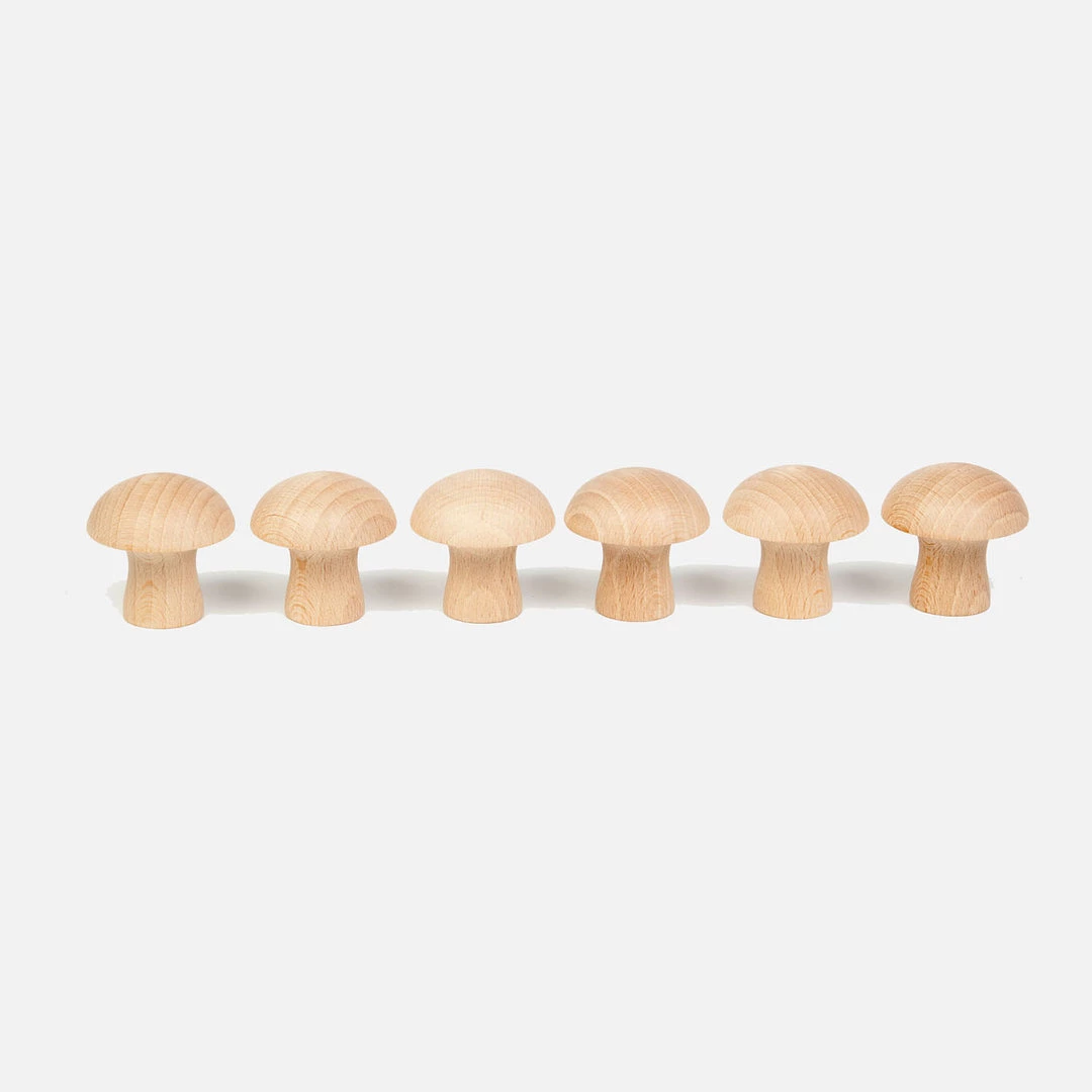 Mushrooms in natural wood finished in natural waxes.