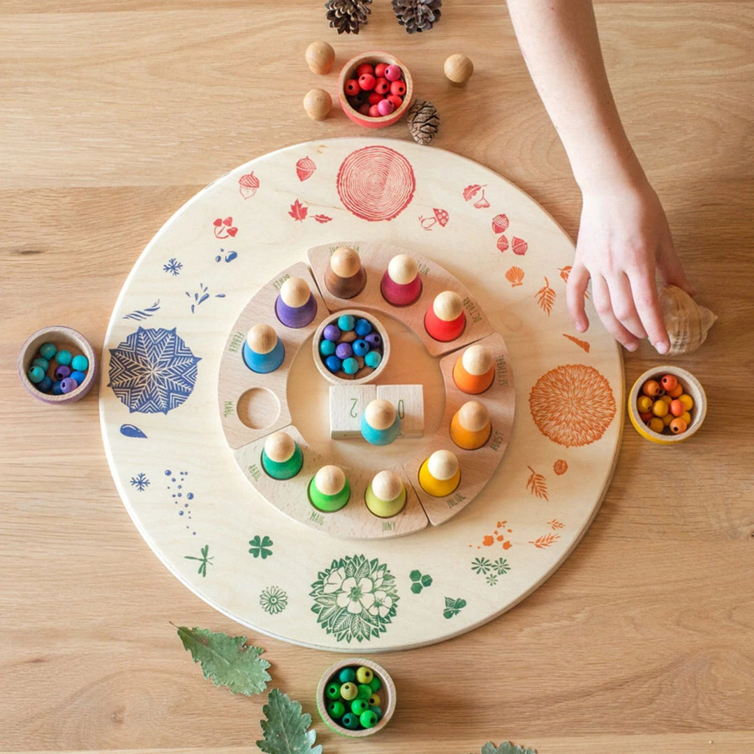 Beautiful wooden round platform with 4 seasonal elements. It is great when used with our Perpetual Calendar from Grapat to help children get familiar with the seasons throughout a calendar year. It can also be used for imaginative play and as a prop in any play.