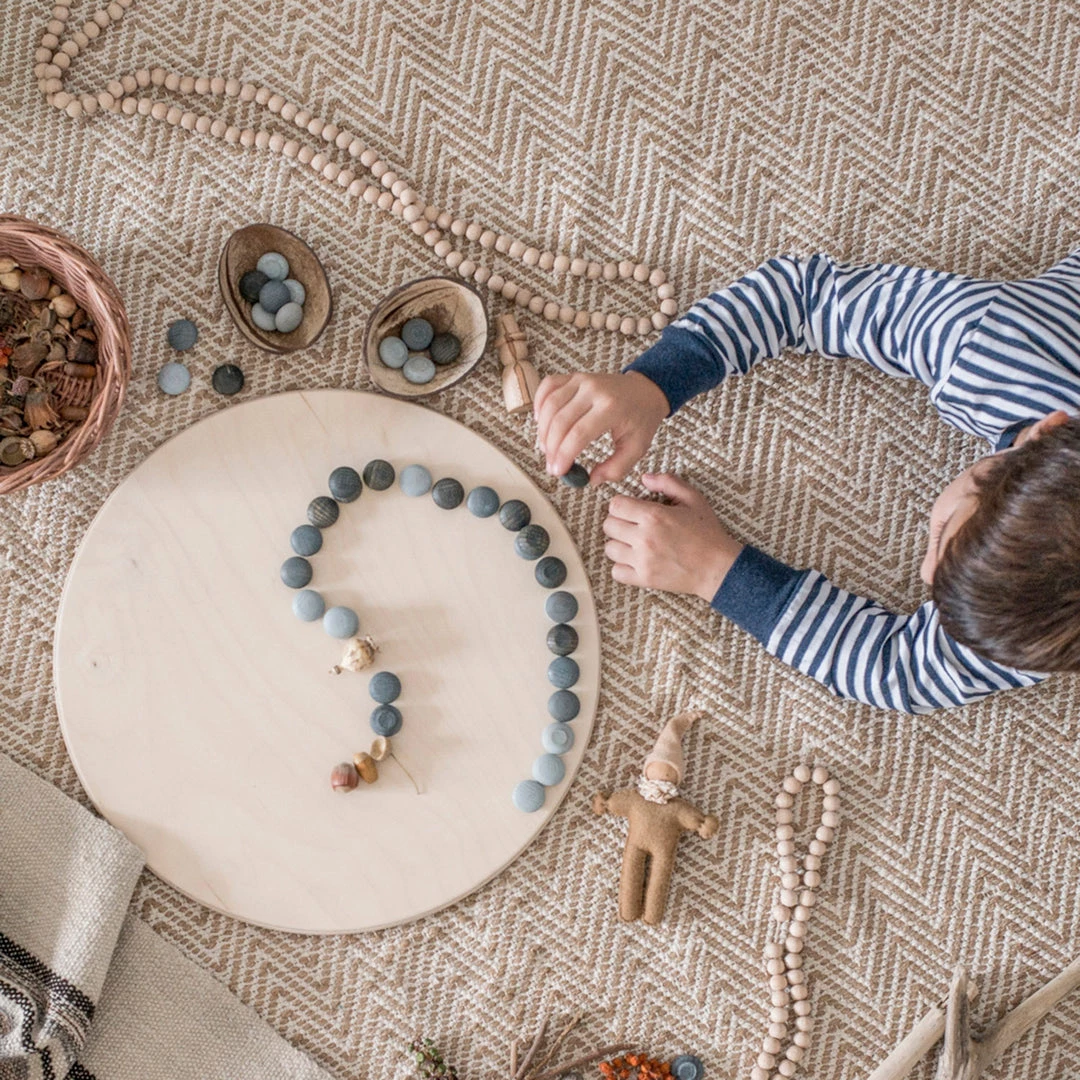 These little stone shaped wooden mandala counters are great for developing mathematical thinking, especially counting and simple sums. Children also love to explore patterns and make circular mandala-style pictures with the shapes. They can also be used in small worlds and imaginative play.