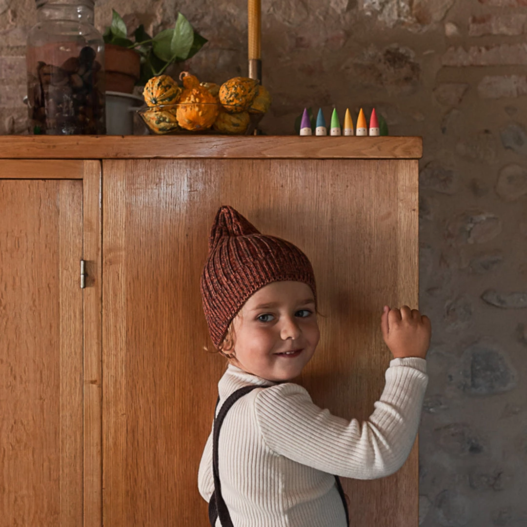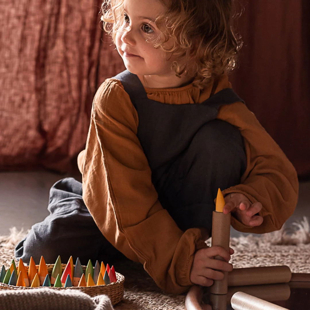 Handmade from sustainable wood and stained with non-toxic colours.