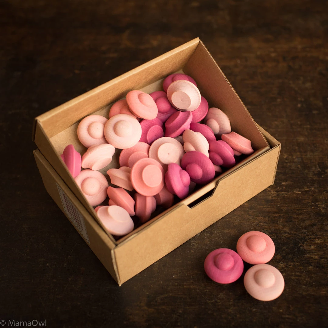 These flower shaped wooden mandala counters are great for developing mathematical thinking, especially counting and simple sums. Children also love to explore patterns and make circular mandala-style pictures with the shapes. They can also be used in small worlds and imaginative play. Handmade from sustainable wood and stained with non-toxic colours.