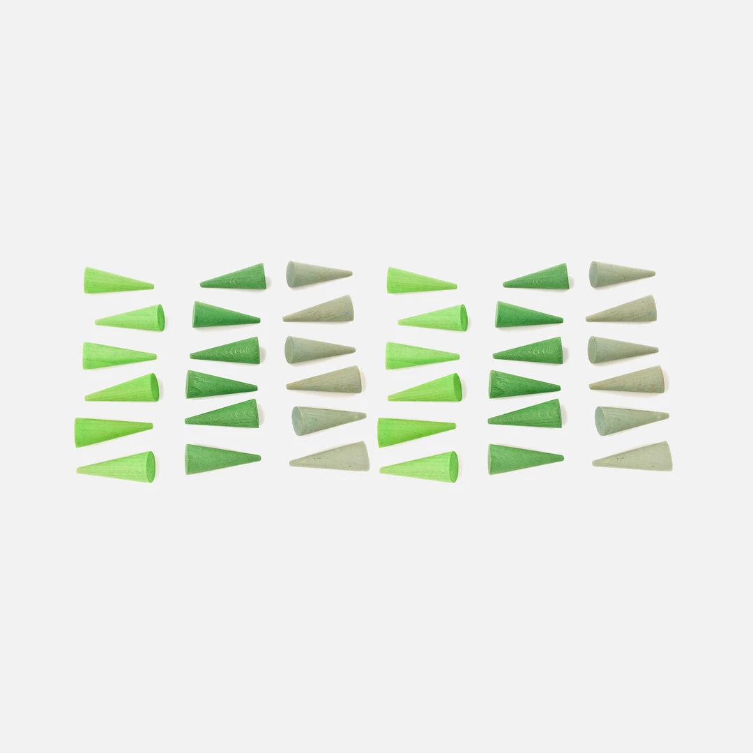These cone-shaped wooden mandala counters are great for developing mathematical thinking, especially counting and simple sums. Children also love to explore patterns and make circular mandala-style pictures with the shapes. They can also be used in small worlds and imaginative play. Handmade from sustainable wood and stained with non-toxic colours.