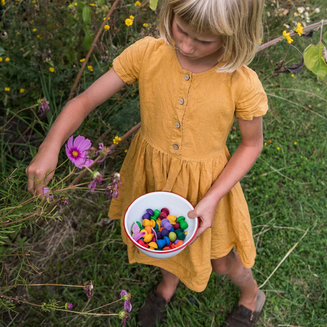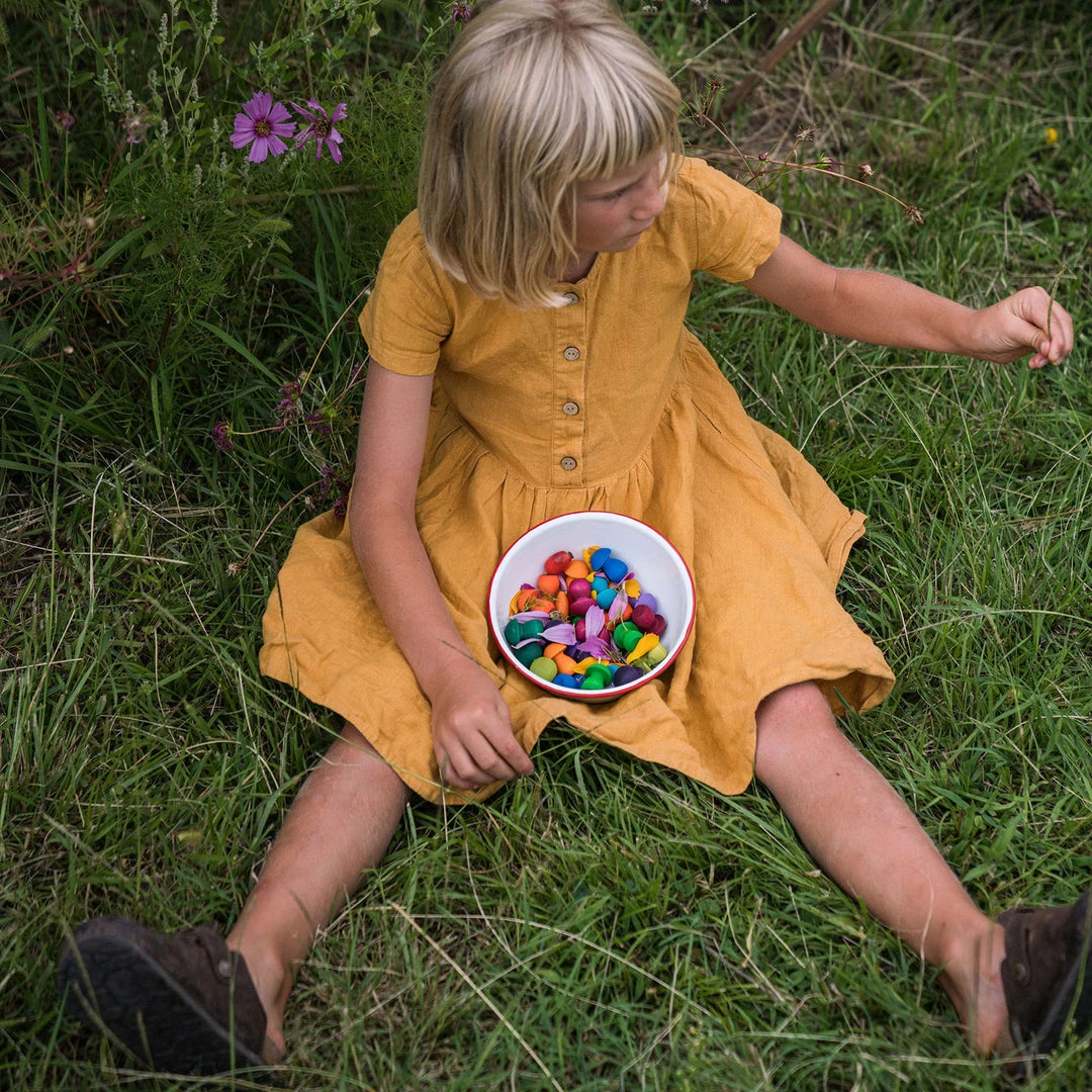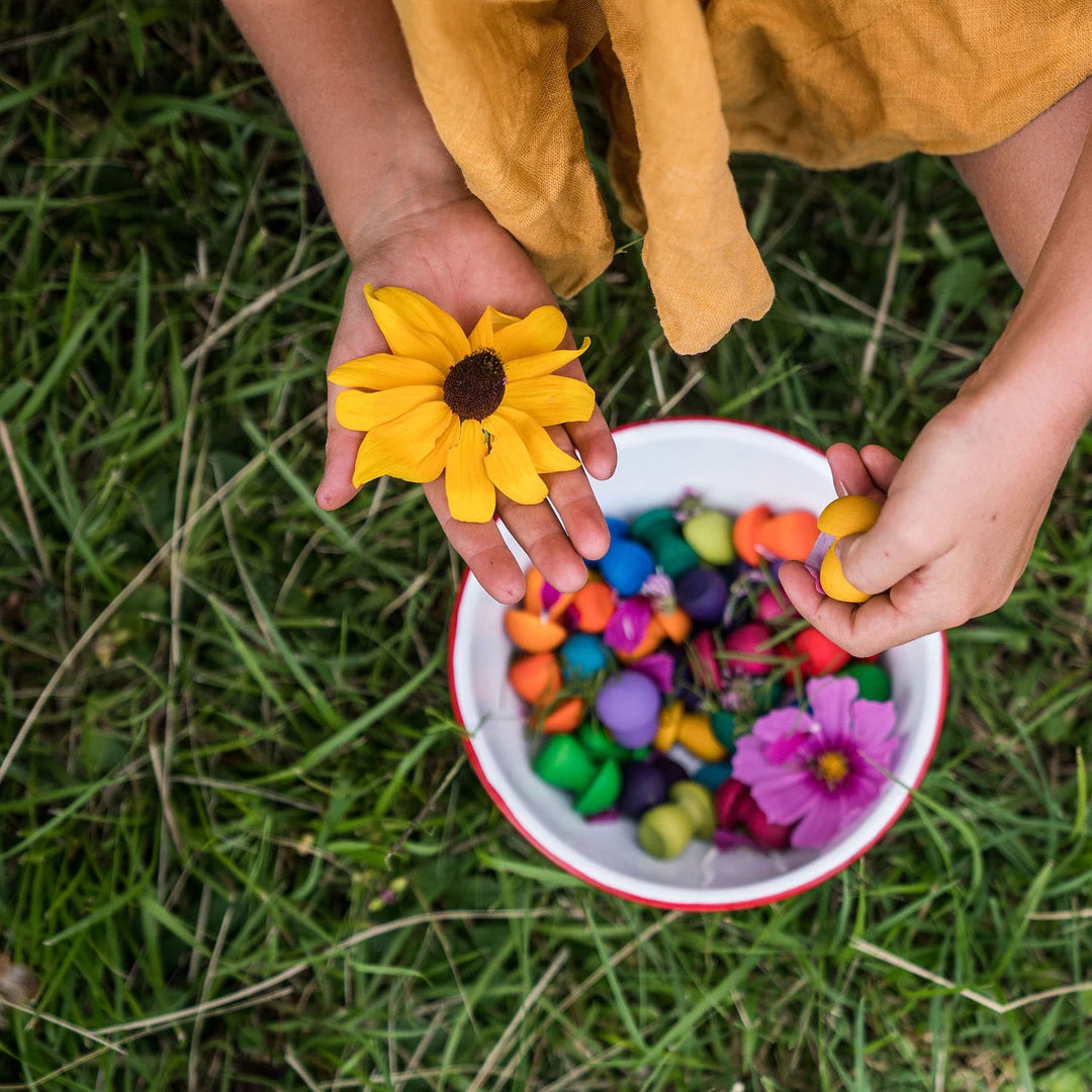 These little mushroom shaped wooden mandalas in rainbow colours are great for developing mathematical thinking, especially counting and simple sums. Children also love to explore patterns and make circular mandala-style pictures with the shapes. They can also be used in small worlds and imaginative play.