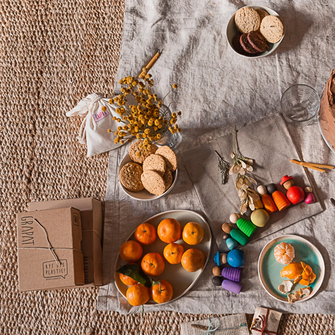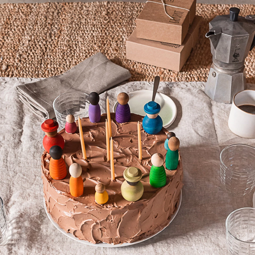 Together is about celebrating the beauty of human diversity in all its colours, shapes and sizes. This stunning set of 12 Nins contains 3 skin tones, 3 Nins that are narrow, 3 that are wide, 3 nins that are striped and 3 baby nins, all packaged in a eco-friendly fabric bag.