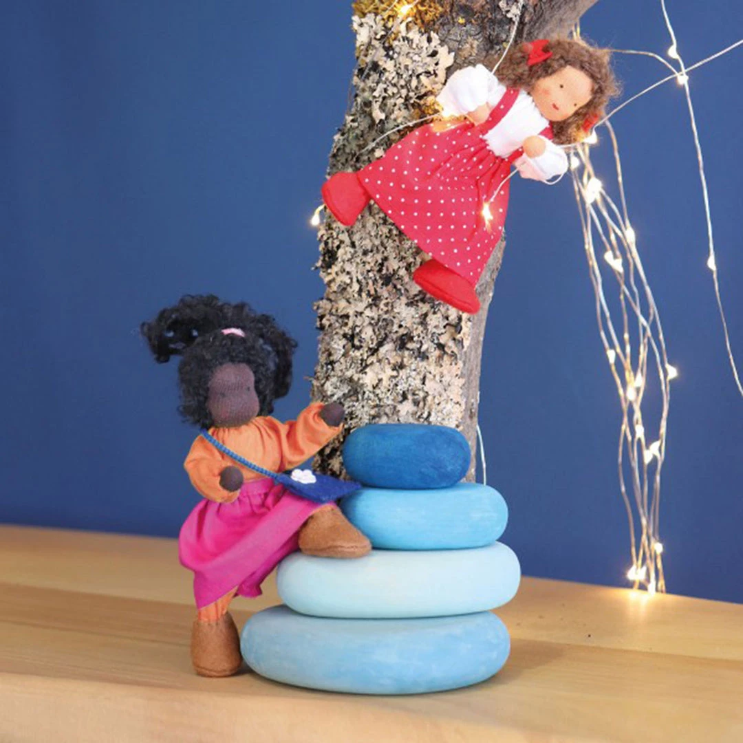 Handcrafted Dolls, perfect for playing alongside all other toys. New doll families Alder and Ebenholz from Grimms are both looking for new homes. Great for imaginative play. The faces are painted by hand, giving each doll a unique expression.