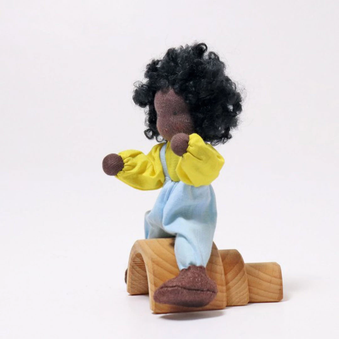 Handcrafted Dolls, perfect for playing alongside all other toys. New doll families Alder and Ebenholz from Grimms are both looking for new homes. Great for imaginative play. The faces are painted by hand, giving each doll a unique expression.