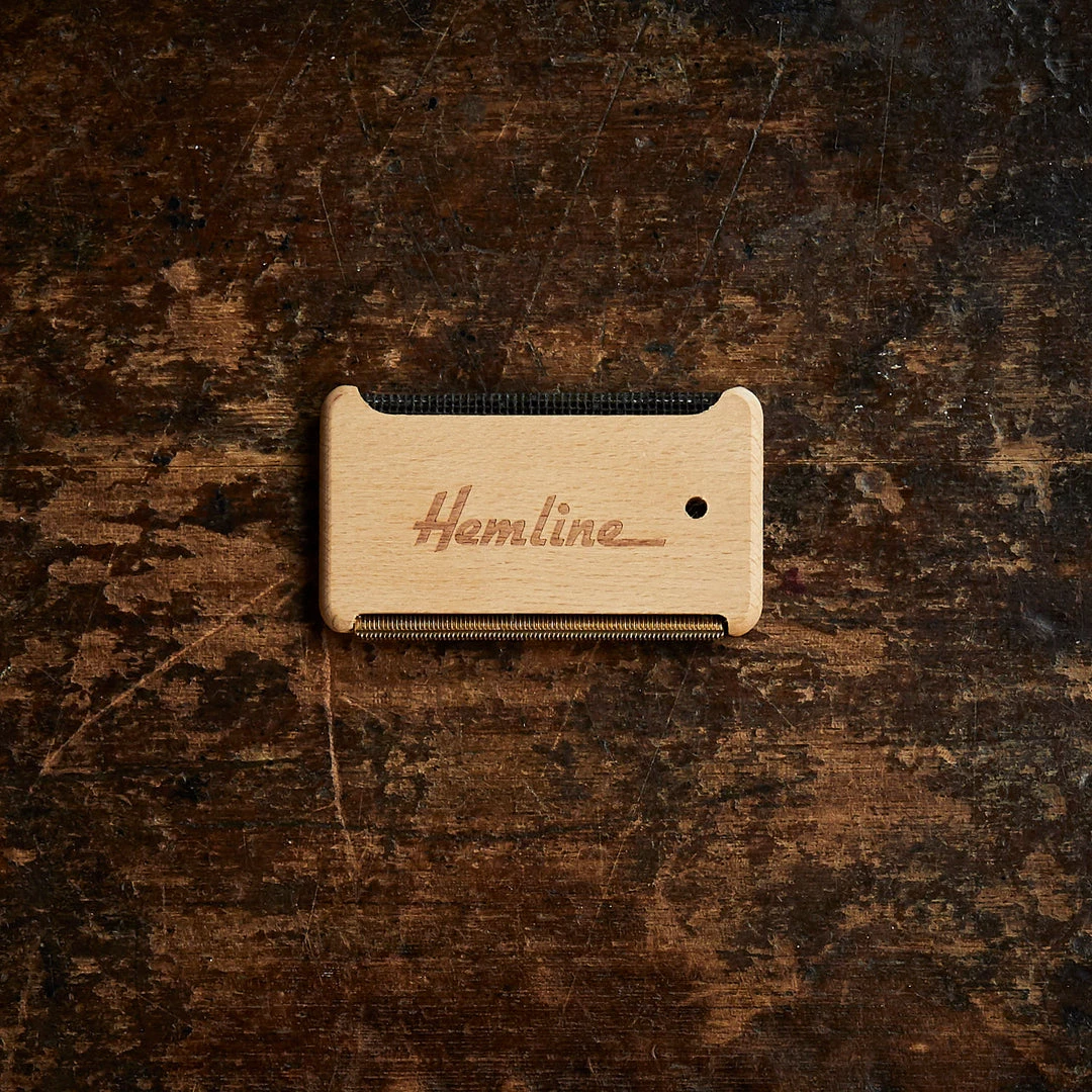 A great addition to your fabric care routine. This comb removes fuzz, pills and lint from both fine gauge kits as well as heavier knits and other fabrics. Eco-friendly in natural beech wood and easy to use. The brass tooth comb side is the fabric comb. It is great for woven fabrics and heavier, more sturdy knitwear. And the black mesh side of the comb is great for delicates, cashmere and finer weight woollens.