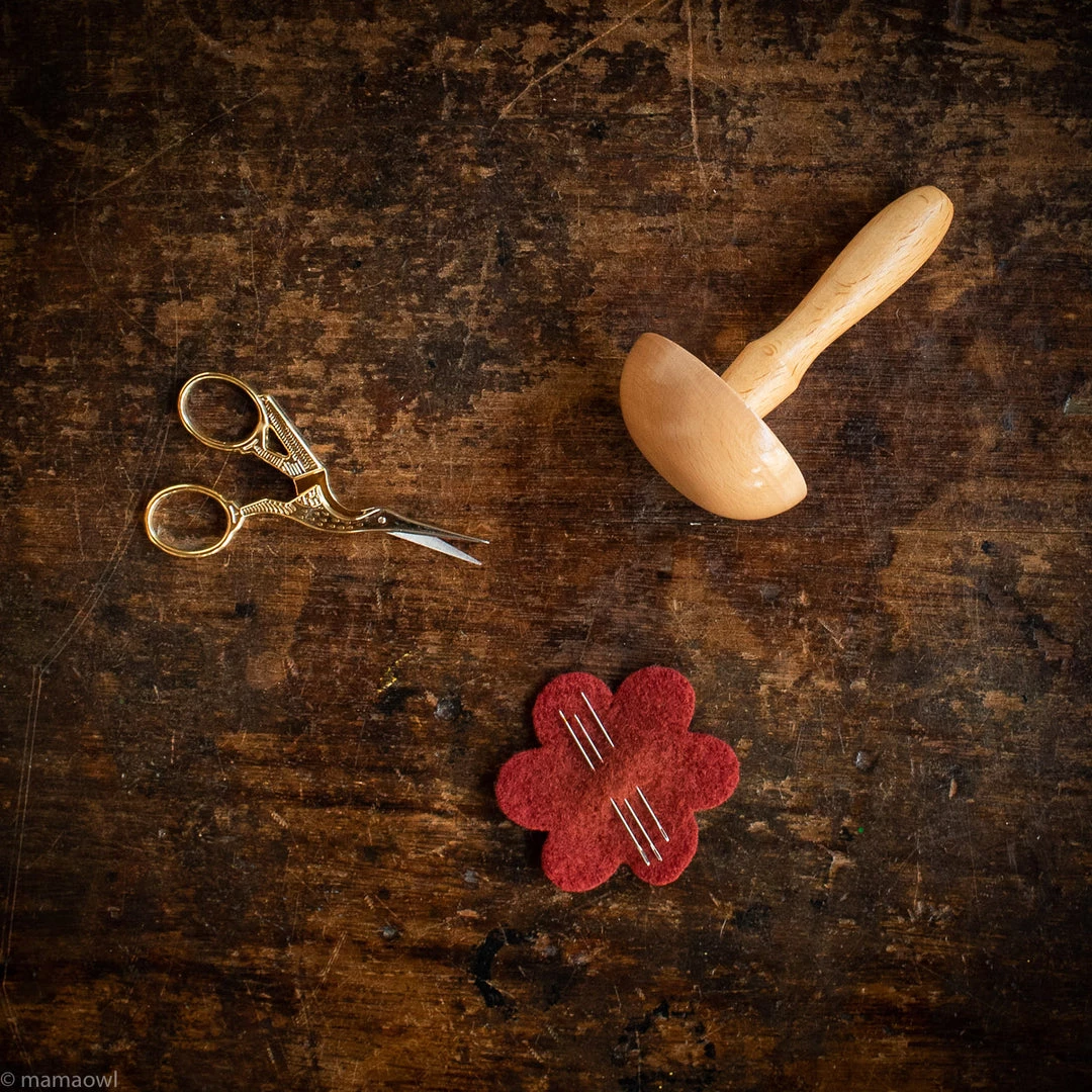 Wooden Mushroom Darner: great for darning socks, gloves stockings, sleeves and much more. A great tool to add to your darning selection, easy to use for beginners. This traditional wooden darner is ideal to help support your material as you lay down your stitches.