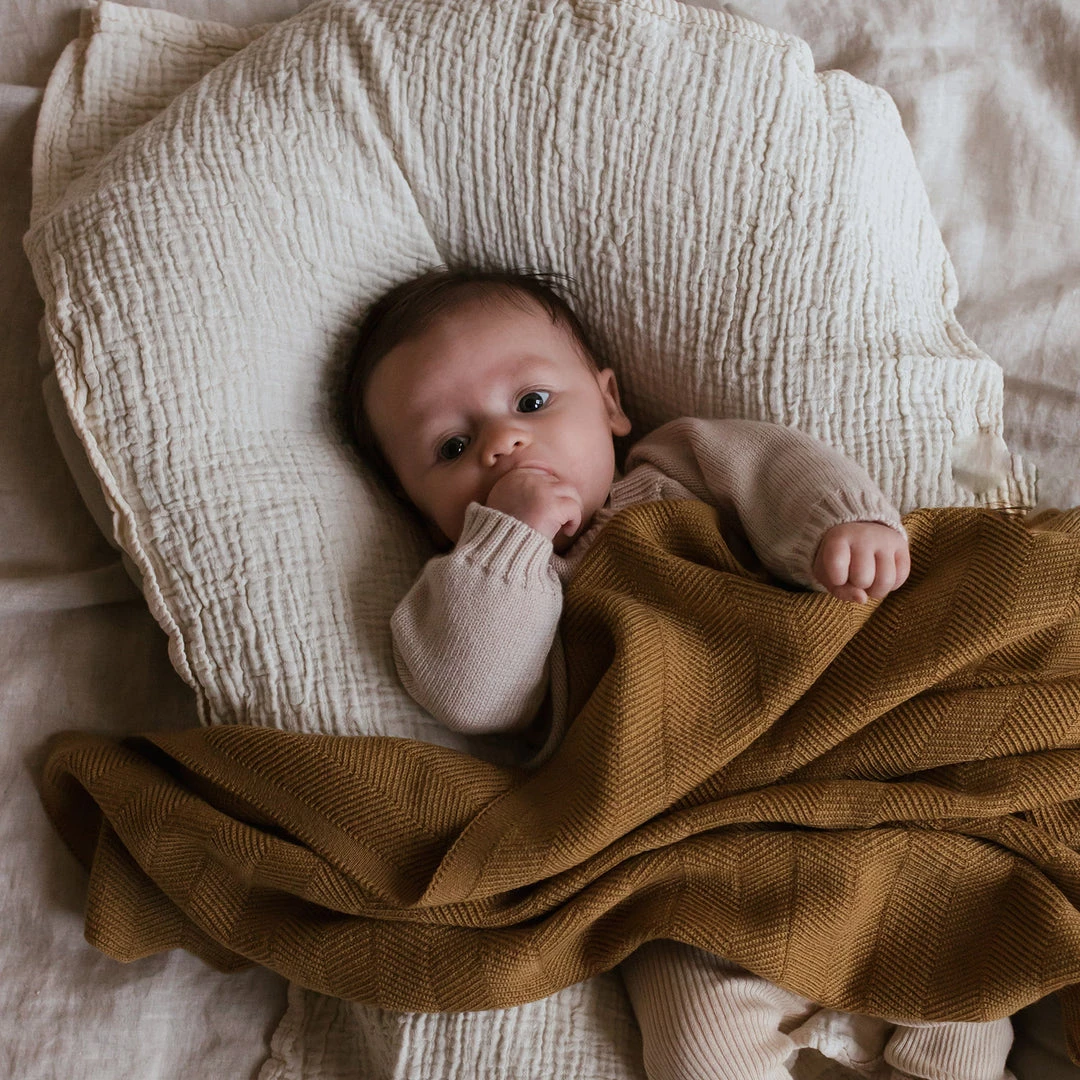 Freddie is a beautiful rib knit texture blanket, worked in a herringbone pattern, that provides extra warmth on cooler days. Beautiful edging detail that follows the zig zag design of the blanket. This is the heaviest weight of the Hvid Blankets that we stock. A perfect newborn blanket that is great for nap times and swaddling and for use throughout the day. These make a perfect gift also. All Hvid products are made from pre-washed Woolmark certified, Oeko-Tex Italian merino wool which is guaranteed Mulesing free.