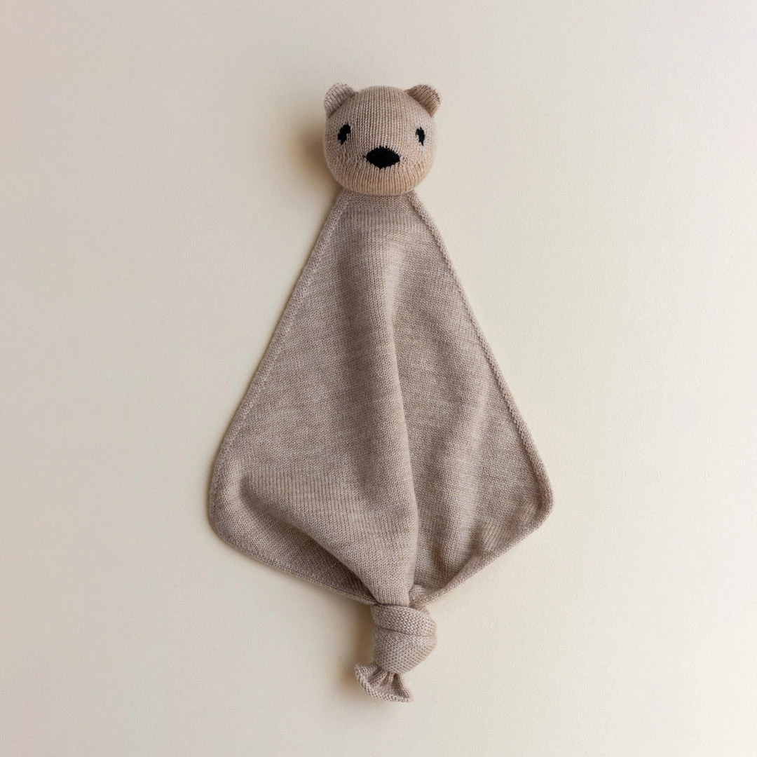 The Tokki Teddy comforter is a great baby accessory. Supersoft and comfortable to play with. Features a friendly stuffed bear face with a knot at the bottom, making each end easy to grasp and play with. This 100% natural baby toy is entirely made from Merino Wool. Merino wool is antibacterial and is perfect for babies with sensitive skin. This item makes a perfect newborn gift and is available in a range of colours.