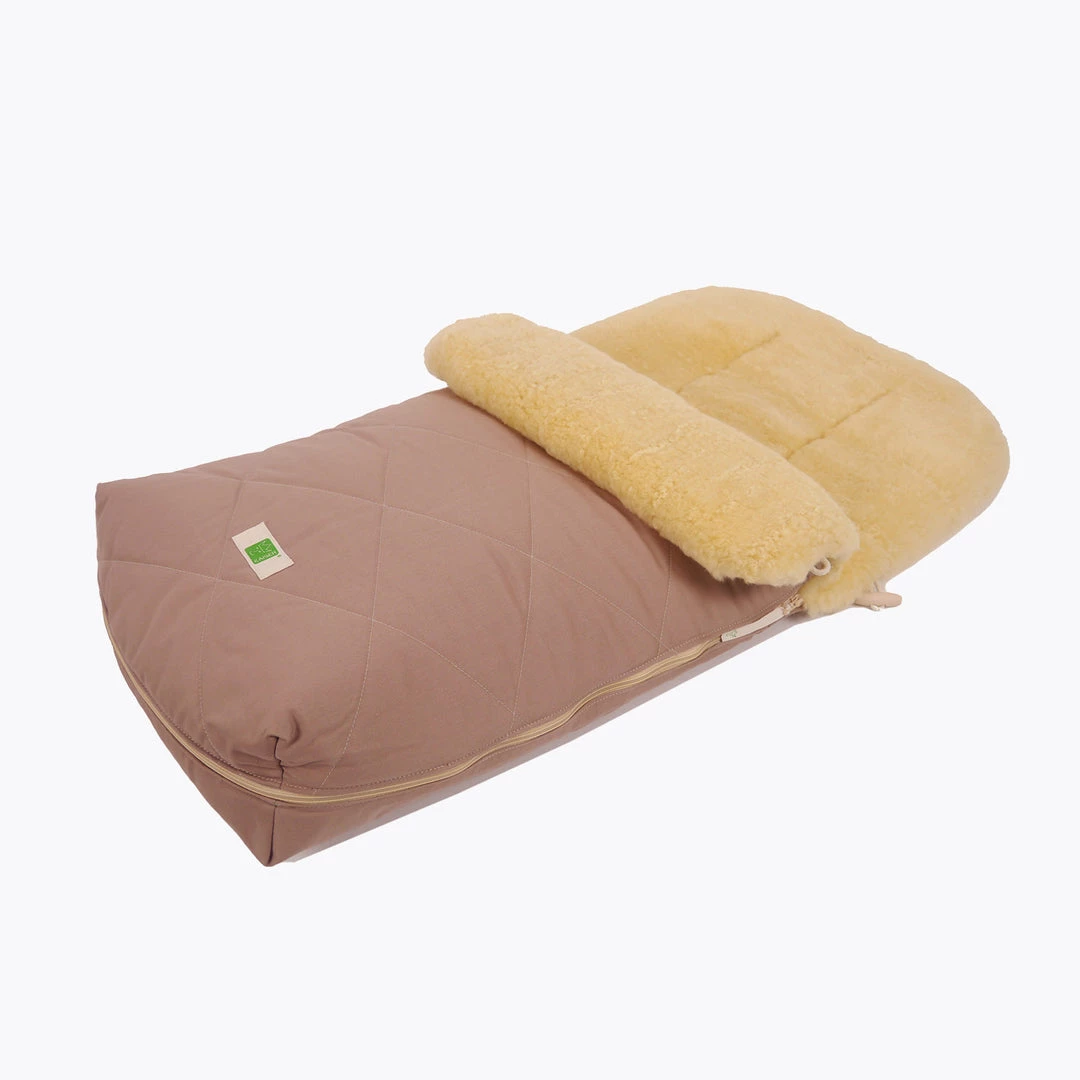 Lambskin with its softness, thermal regulation and the ability to evaporate are an ideal base for your child. The footmuff Natura organic cotton consists 100% of natural materials.Â