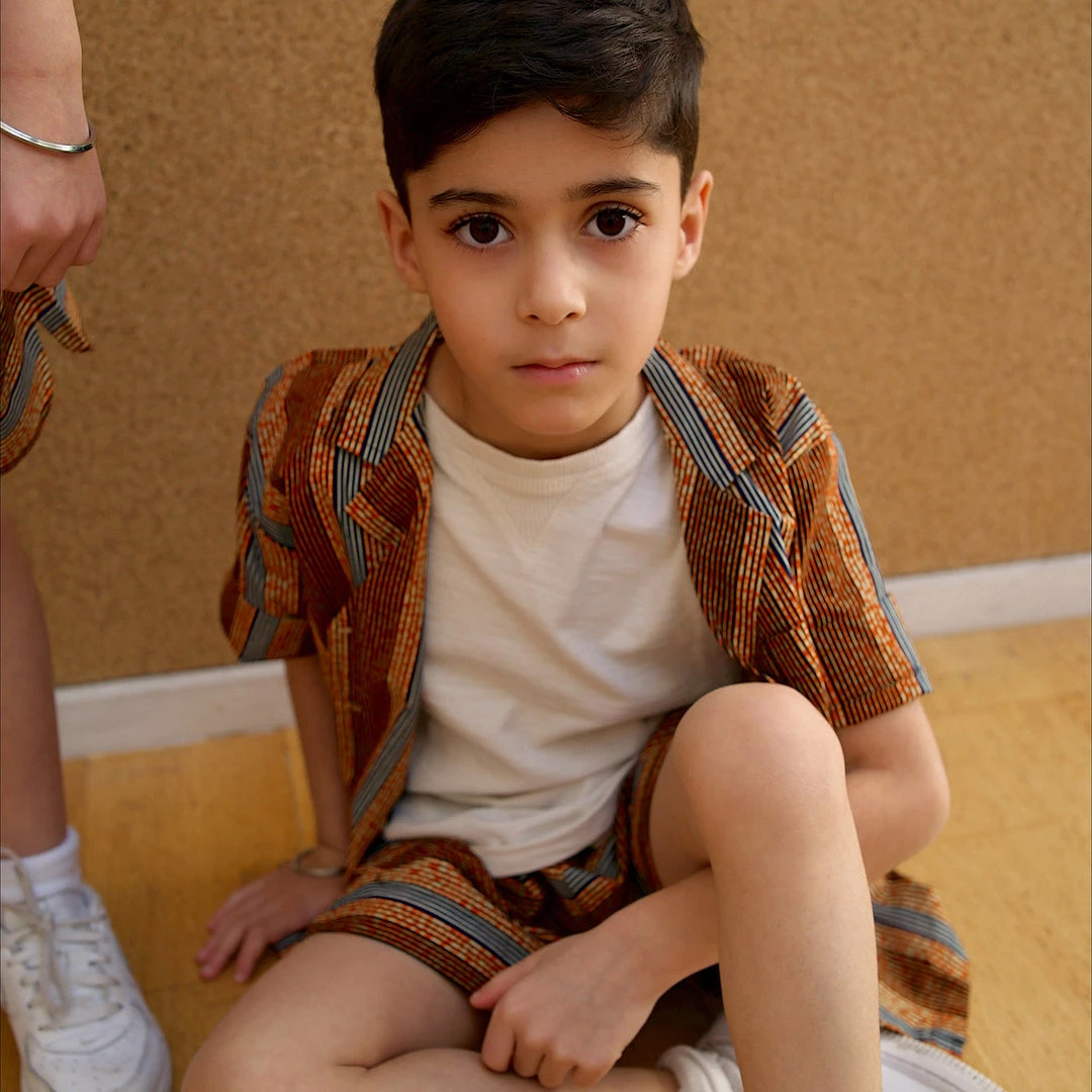 The Temi shorts are a perfectly unisex summer style. The elasticated waist, cotton drawstring and roomy fit make these perfect for play and everyday. A great addition to your summer wardrobe. These shorts look great when paired with a simple white tee or when paired with the matching shirt for a striking all over print look.