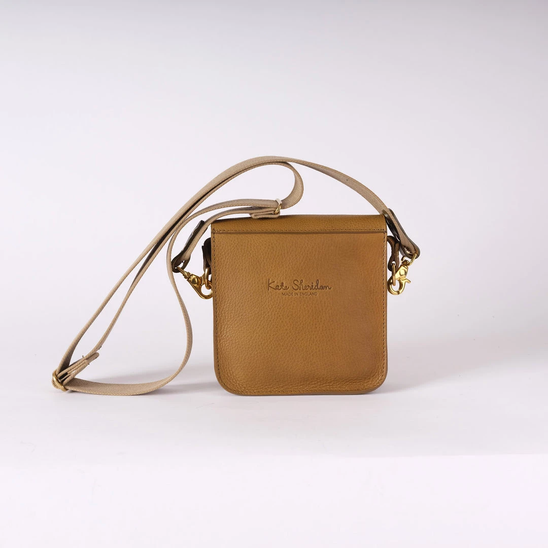 The perfect everyday bag, unlined and fastens with a tab magnetic closure. It features an adjustable Belgian webbed strap and is finished with Italian Brass hardware.