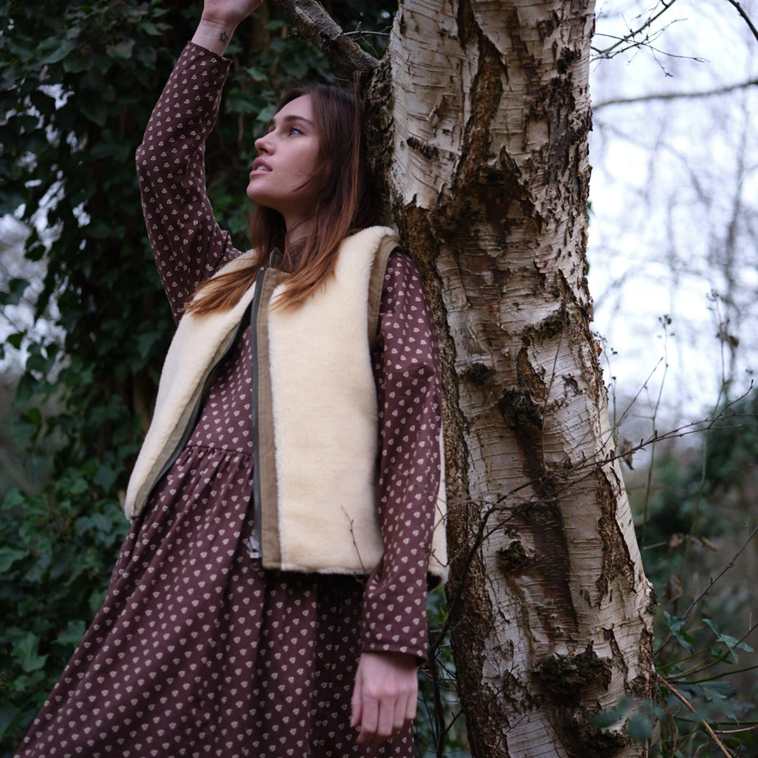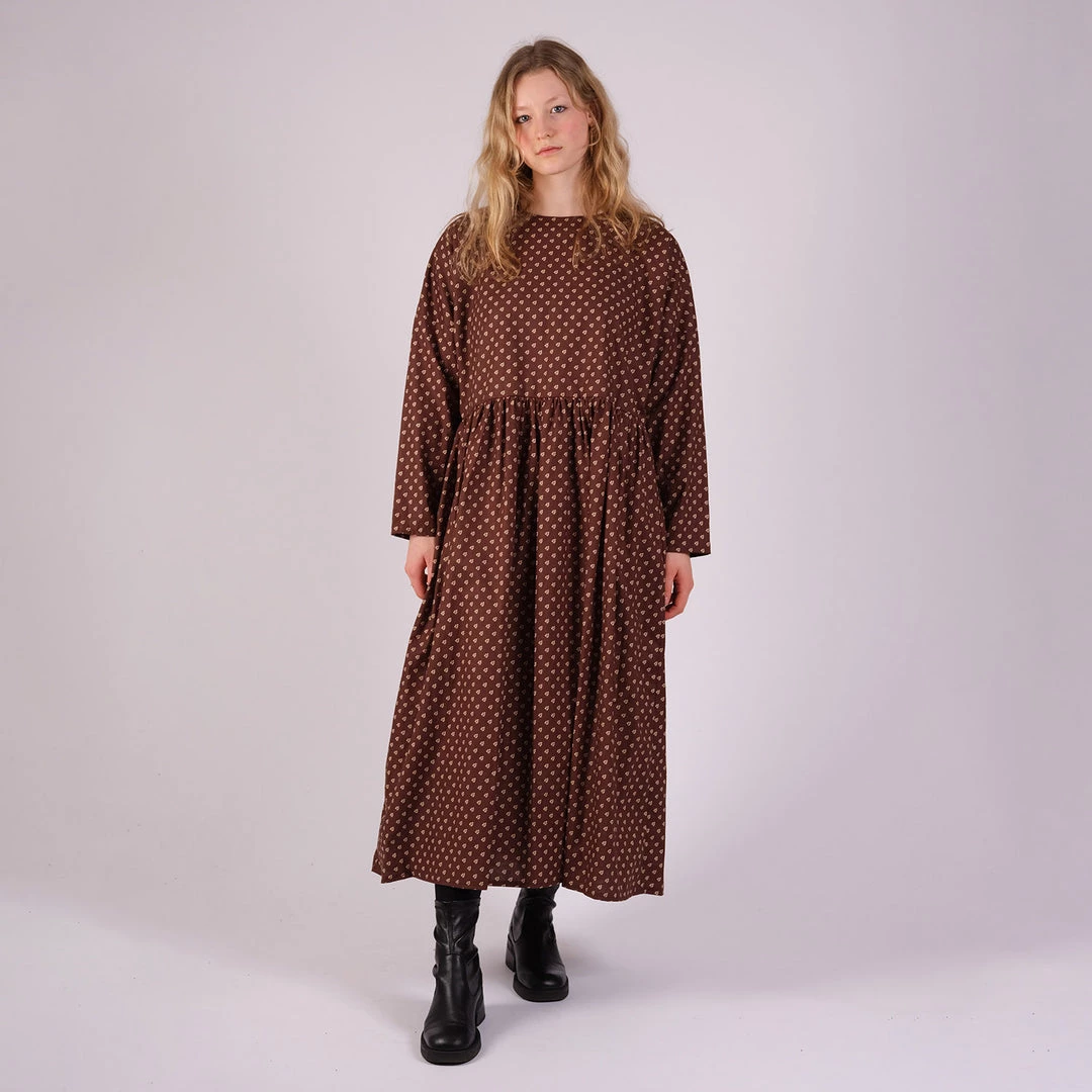 This beautiful gathered dress has a maxi length and functional side pockets. Easy to wear and provides everyday comfort. The bodice is lined for extra warmth in the winter months.
