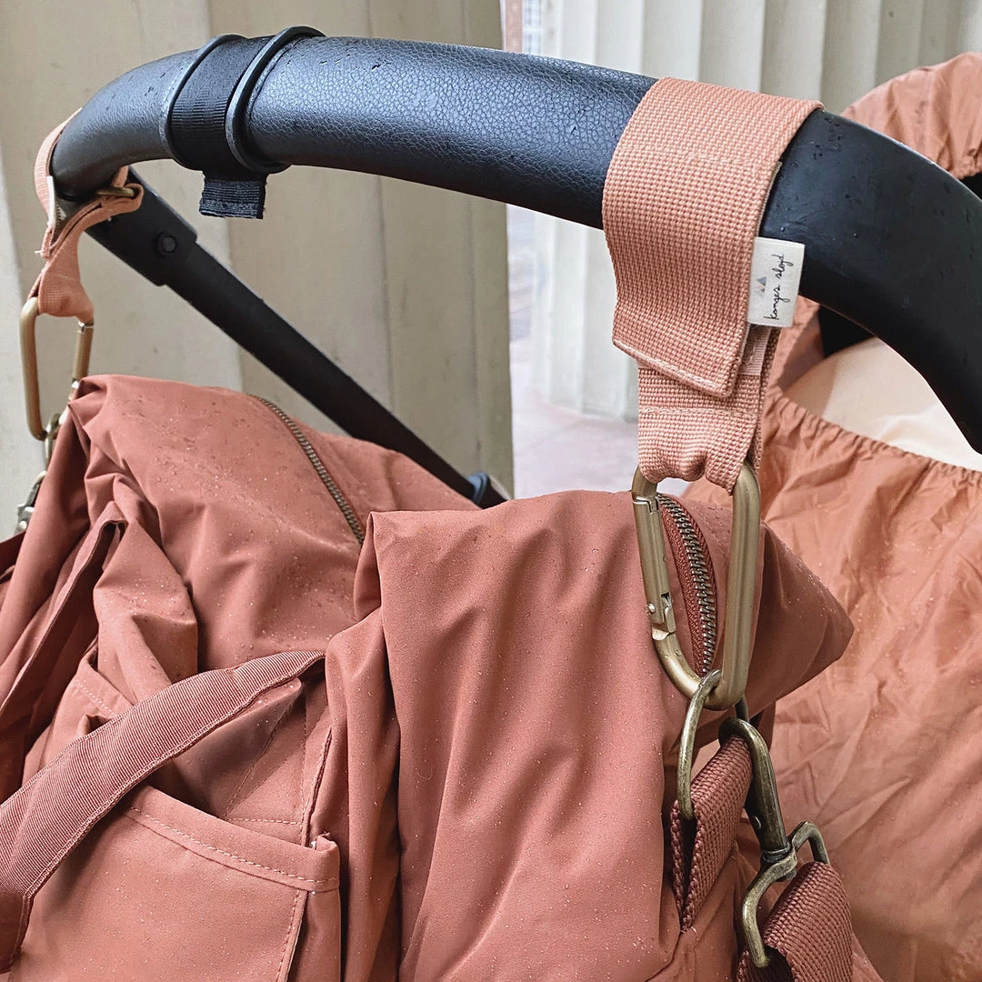 These stroller/pram/pushchair straps are perfect with Konges Sløjd Mommy bags or any other bag you would like to take along. The straps can be used for carrying your mommy bag on the handle and are also handy if you have groceries or other things to carry.