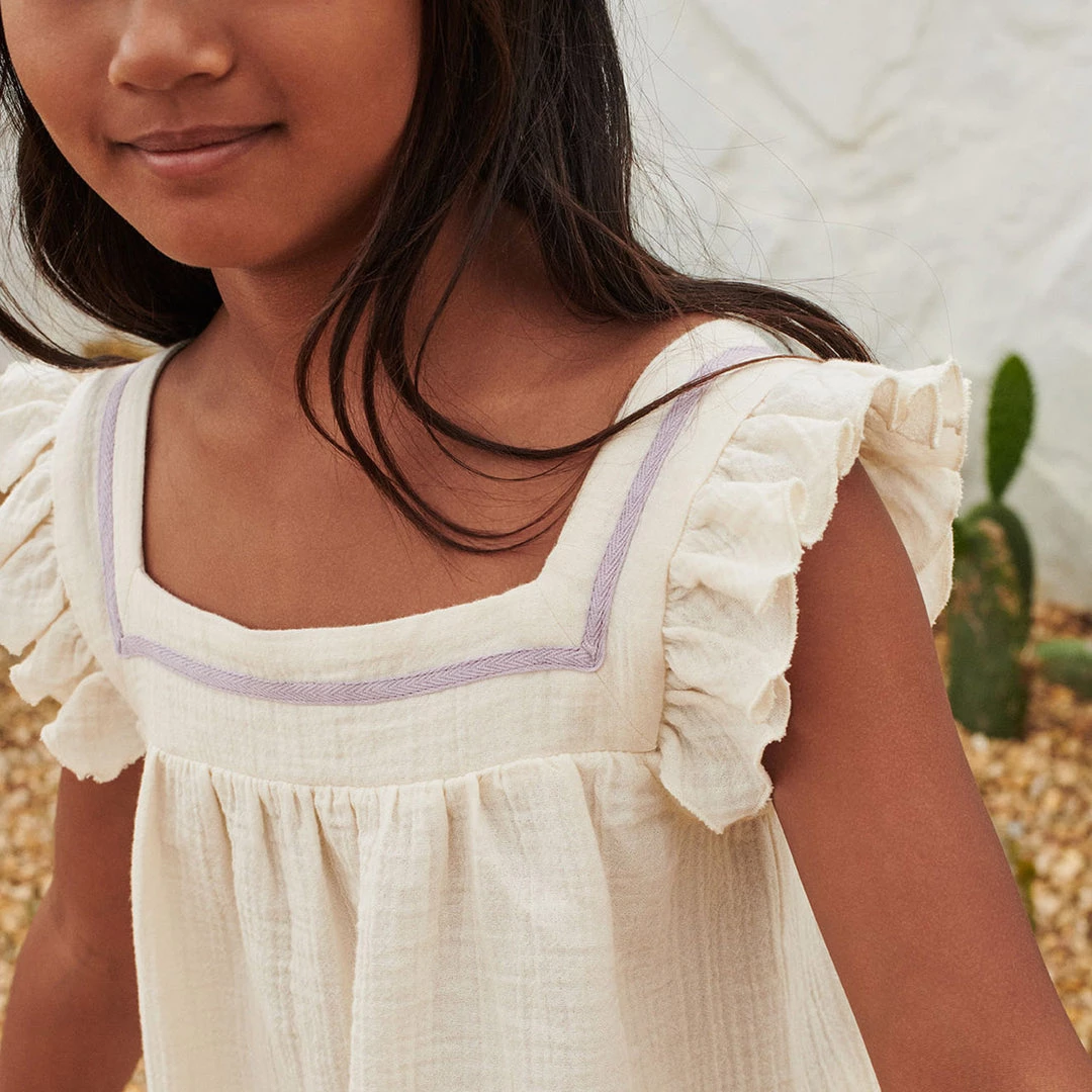 The Peppa pyjama is perfect for those warm summer nights. Designed sleeveless with ruffles and a comfortable fit, made in a cotton muslin. The Peppa pyjama is also available for women.Â
