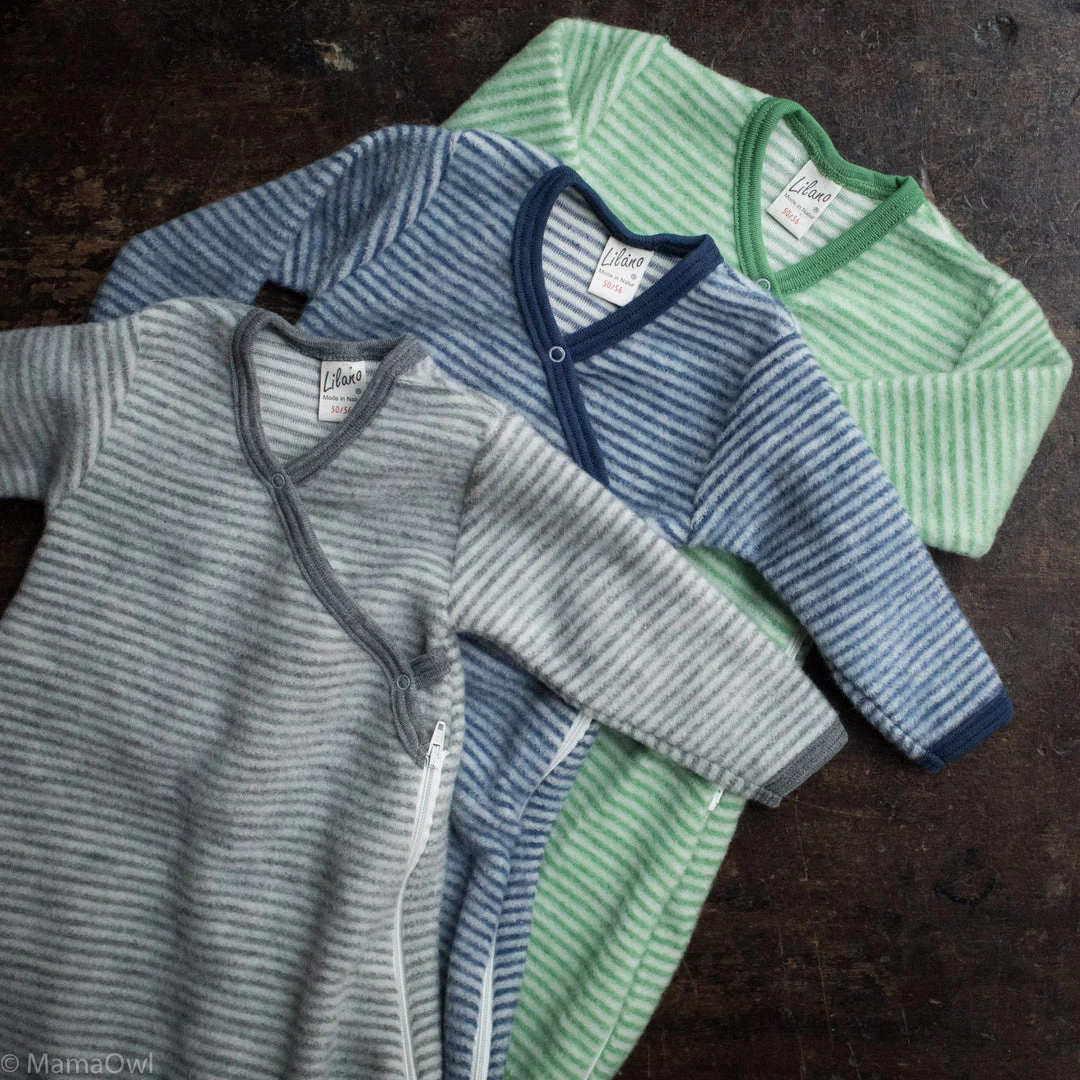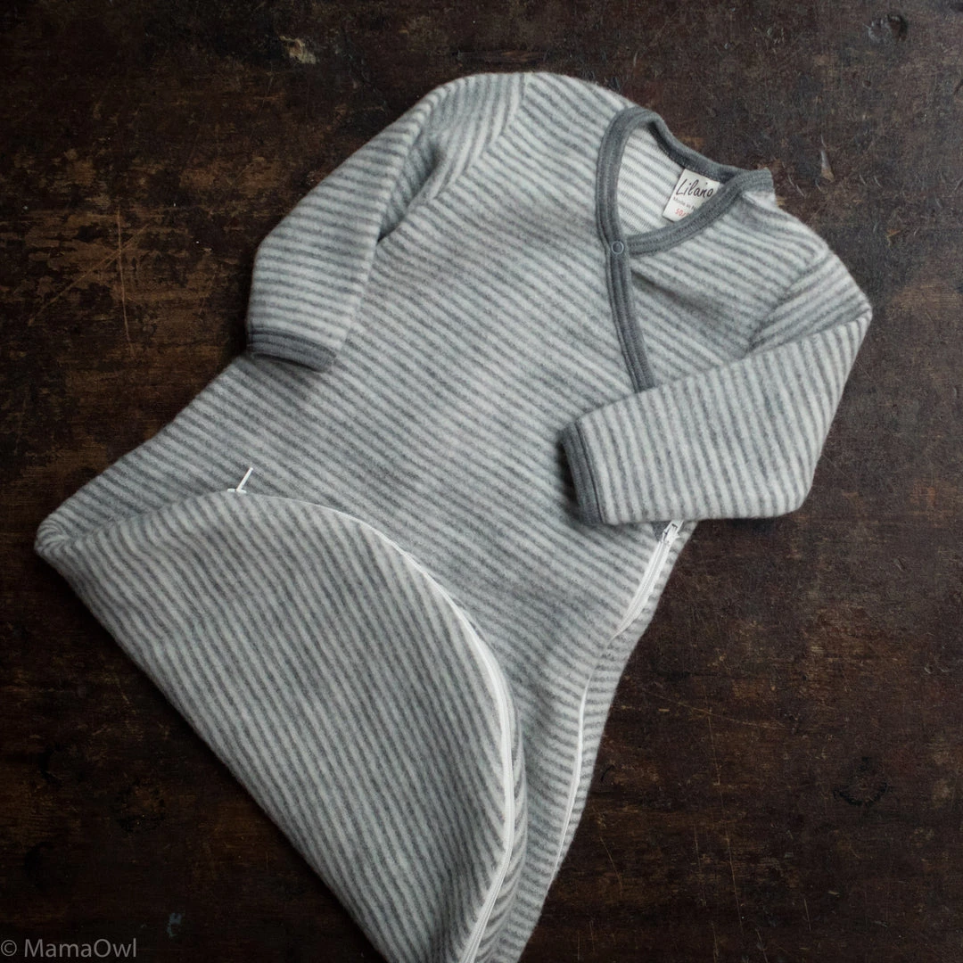 This sleeping bag will keep your baby well wrapped up and warm overnight. Thanks to the little loops in the wool terry which trap the warm air close to the body. Perfect for newborns and small babies. In cooler environments or for those who find it hard to keep warm, we recommend to layer with a wool/silk body and/or wool silk pyjamas under the sleeping bag.