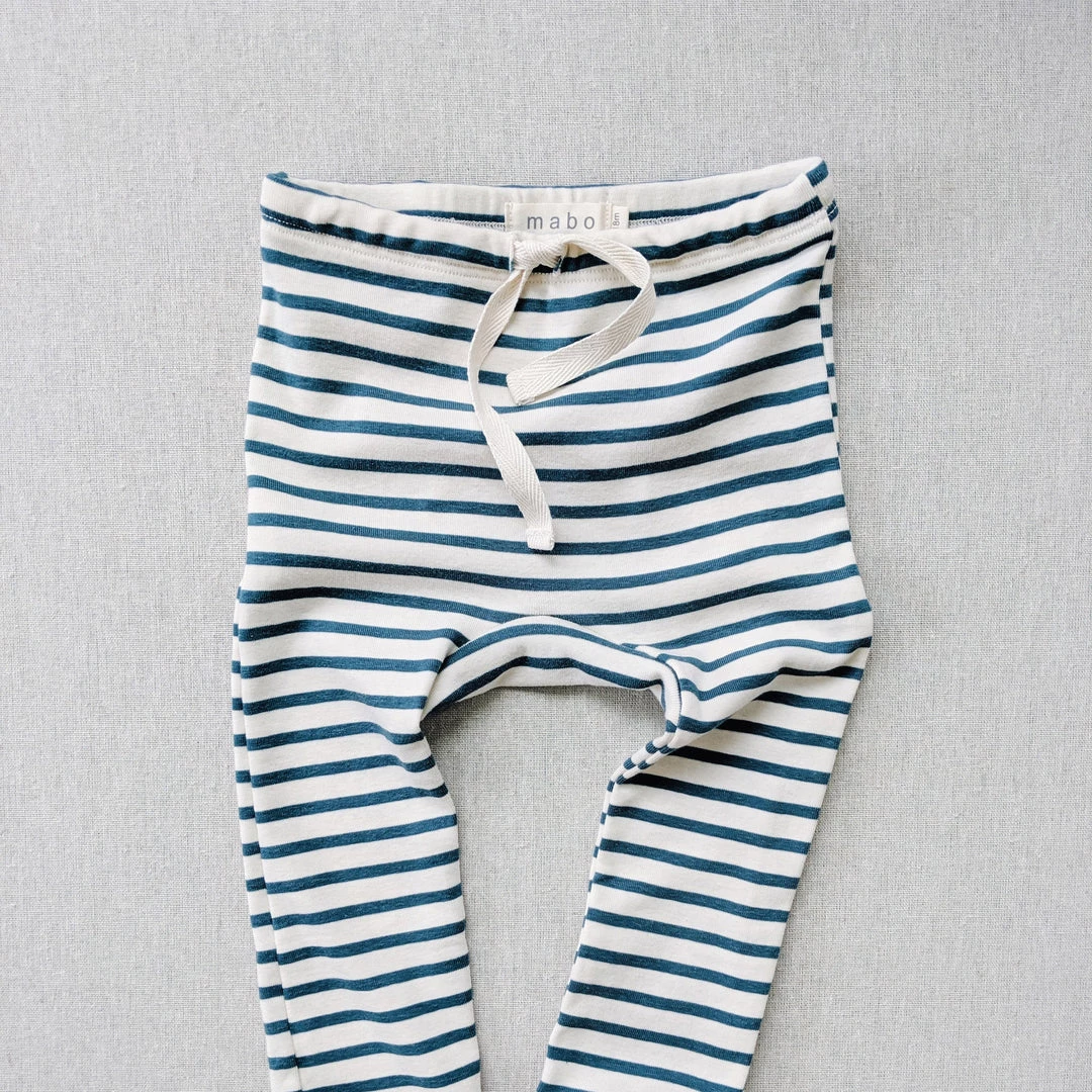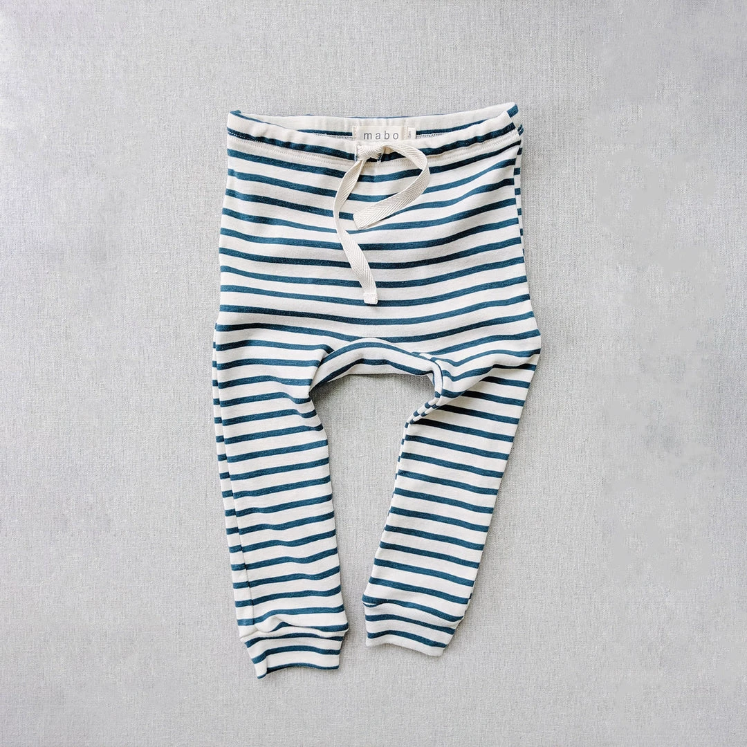 These leggings from Mabo are a favourite. Made in a super soft organic cotton with a slim fit and a twill tape drawstring.