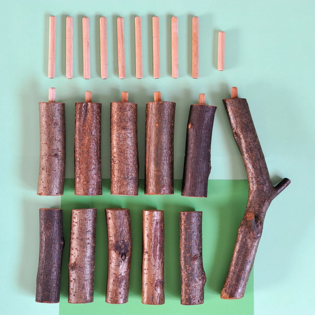 Made from alder, white beech and hazel. Surface oiled with linseed oil.