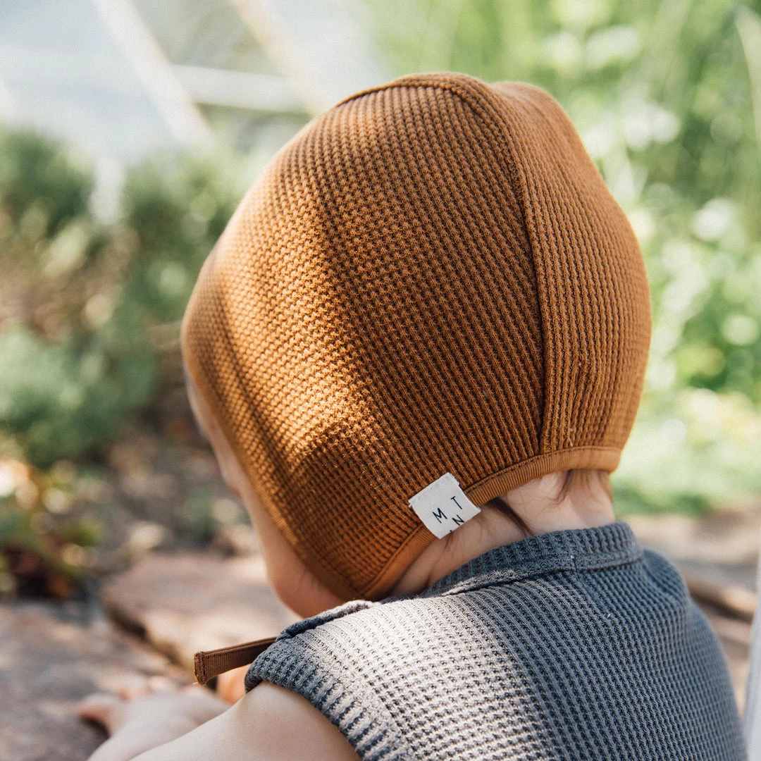 This beautiful soft and lightweight waffle knit bonnet offers shade from the sun or shelter from cooler breezes. Easy to wear and style. Perfect for spring and summer days.